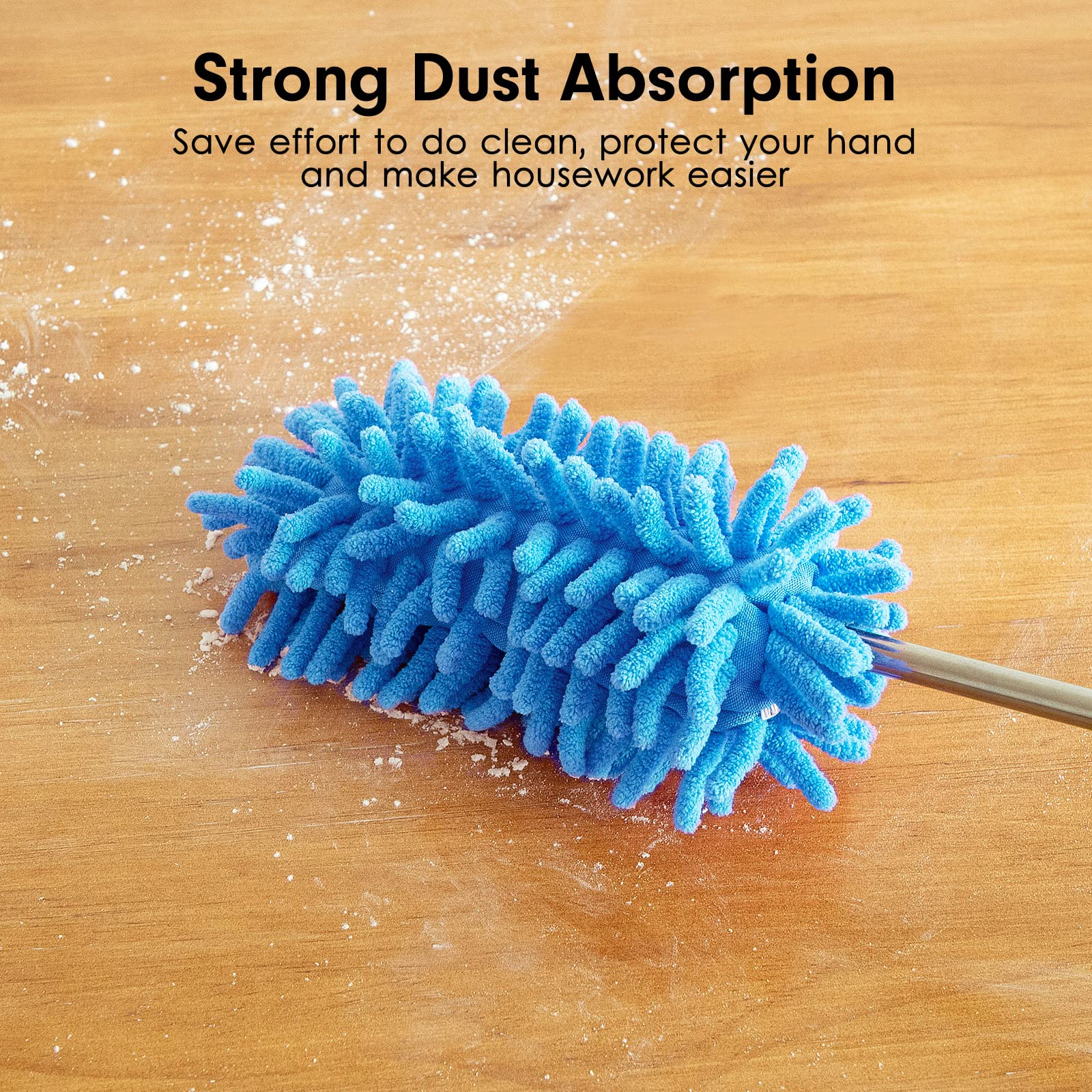 Multi-use Extension Pole: This duster is suitable for cleaning the dust in car, office, computer, air condition, TV, light bulb, photo album and other household appliances dust, cleaning the dust from the sofa, table, cabinet, etc.