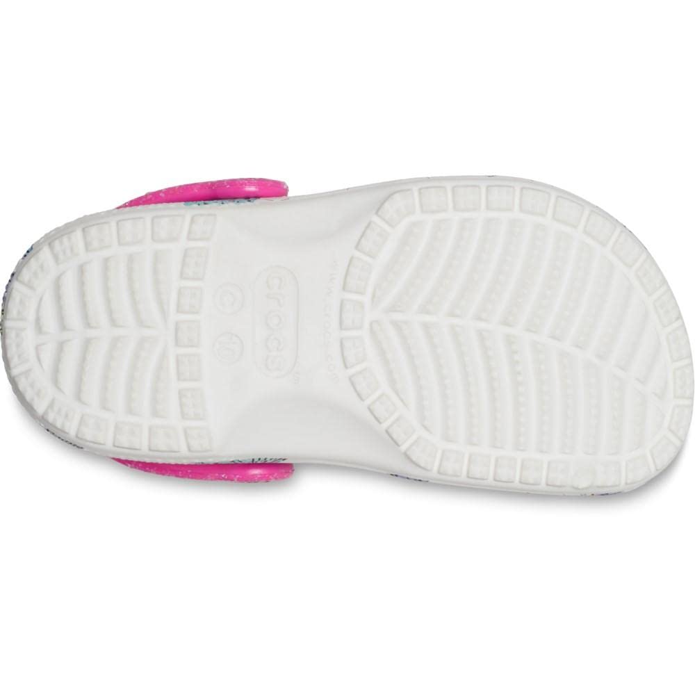 PERFORATED BUILD: Let the fun begin in the Crocs Kids Classic Clog - Seasonal Graphic, featuring water-friendly clogs with a closed round-toe, a perforated build with ventilation ports for breathability, and vibrant patterns