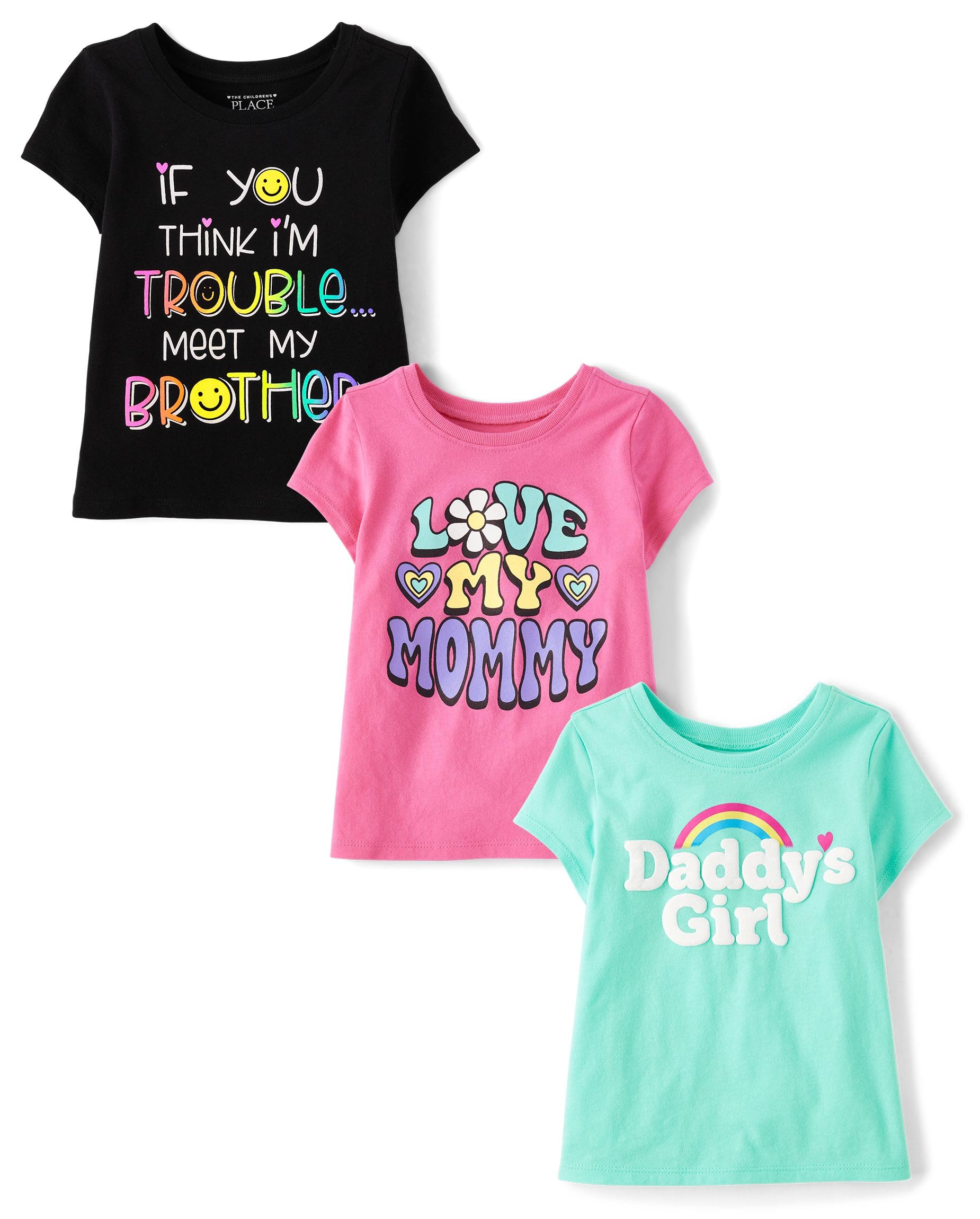 MULTIPACK: 1 'Love My Mommy' graphic design, 1 'Daddy's Girl' with rainbow graphic design, 1 'If You Think I'm Trouble Meet My Brother' graphic design