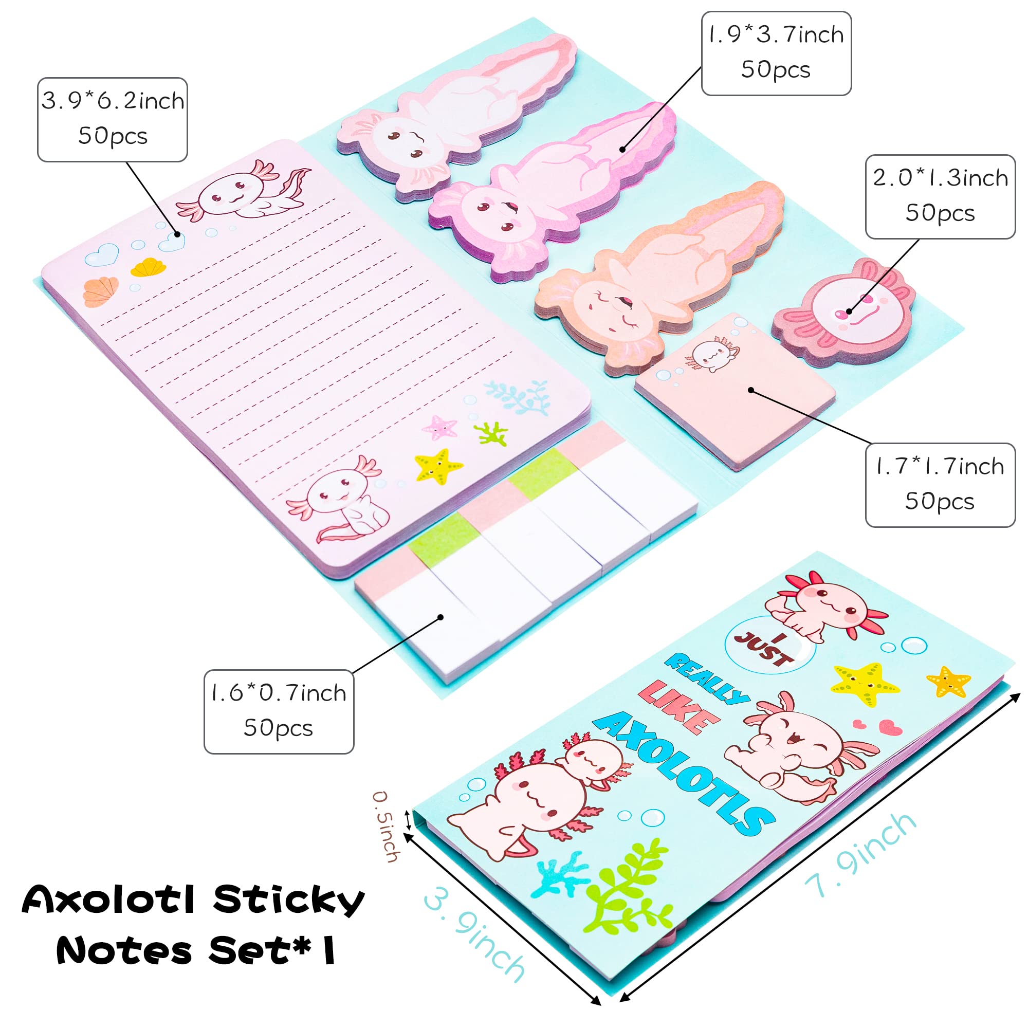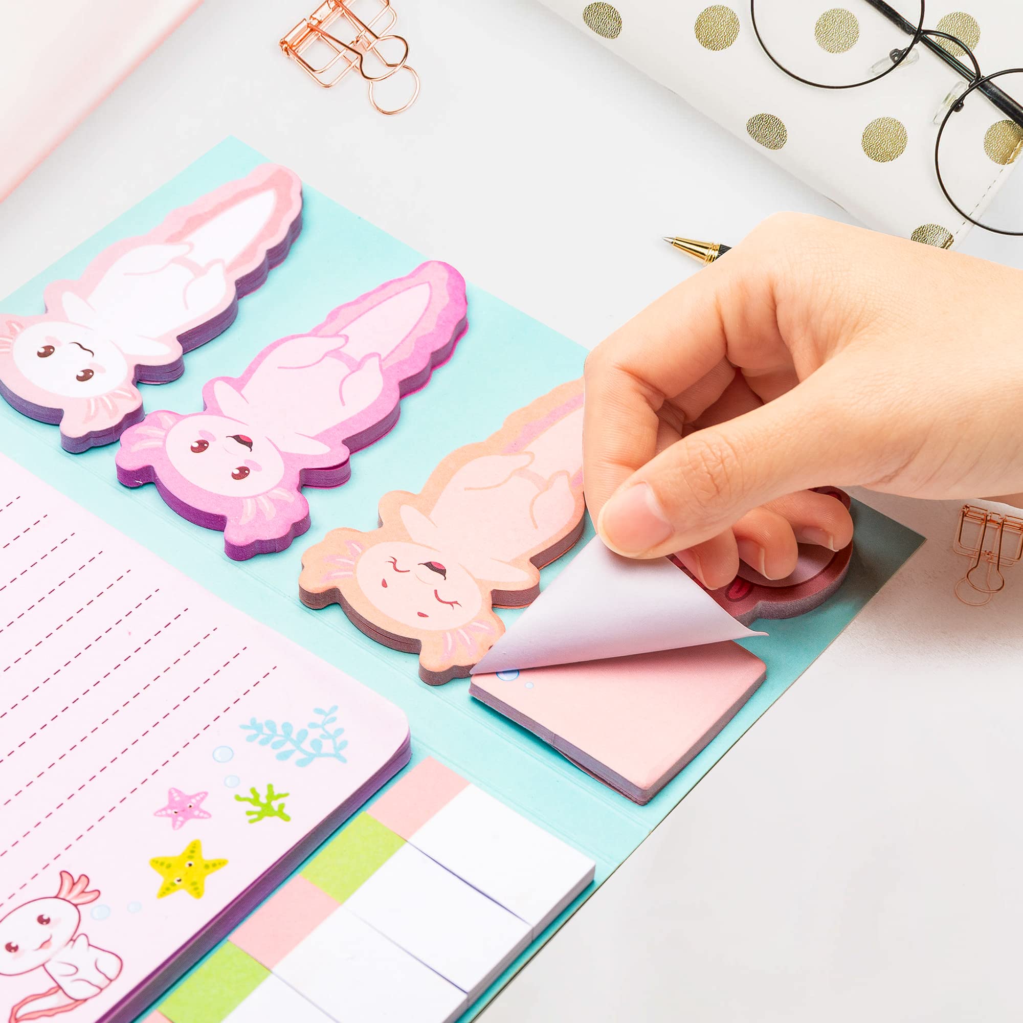 Axolotl Sticky Notes Set: You will get a set of axolotl sticky notes, there are many self-adhesive note pads in different styles and sizes. This set of sticky notes with perfect size, which is easy to carry and fit in your bag. 50 sheets per pad, 550 sheets in total. Meet your various needs