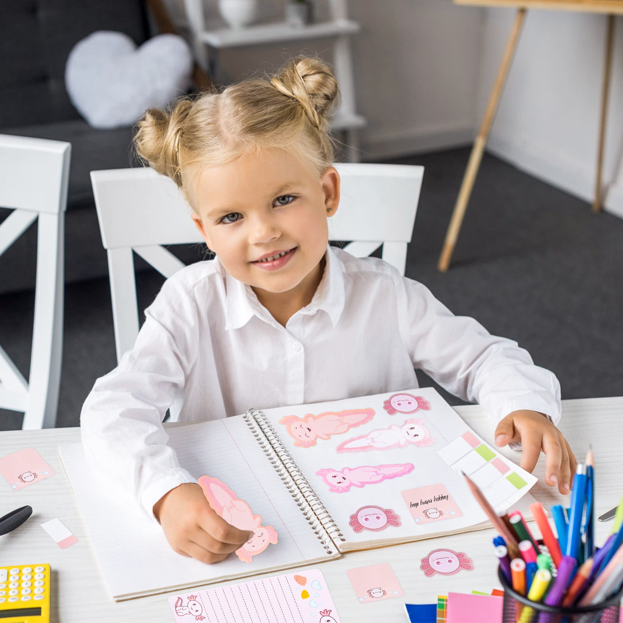 Unique Design: Refuse to be single, we provide a variety of interesting axolotl sticky notes! The cover of the set and the sticky notes inside are designed with axolotl theme,the patterns on the notes are cute and bright color. And this set of sticky notes with perfect size, which is easy to carry and fit in your bag