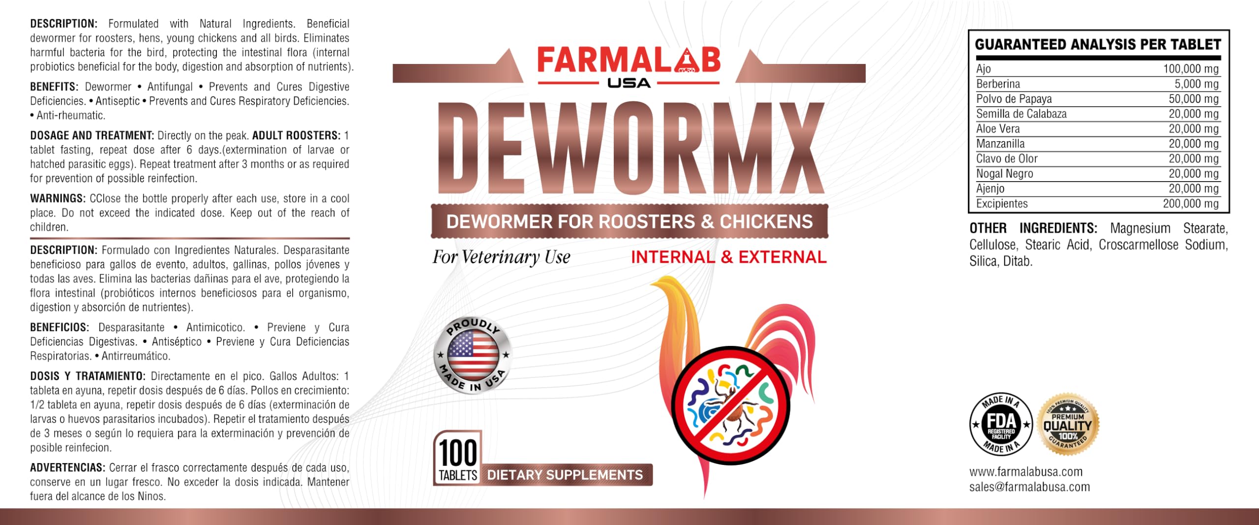 Farmalab Natural Dewormer Internal & External 100 Tabs Poultry - Vitamin for Poultry Rooster Hen Chicken Baby Chick
