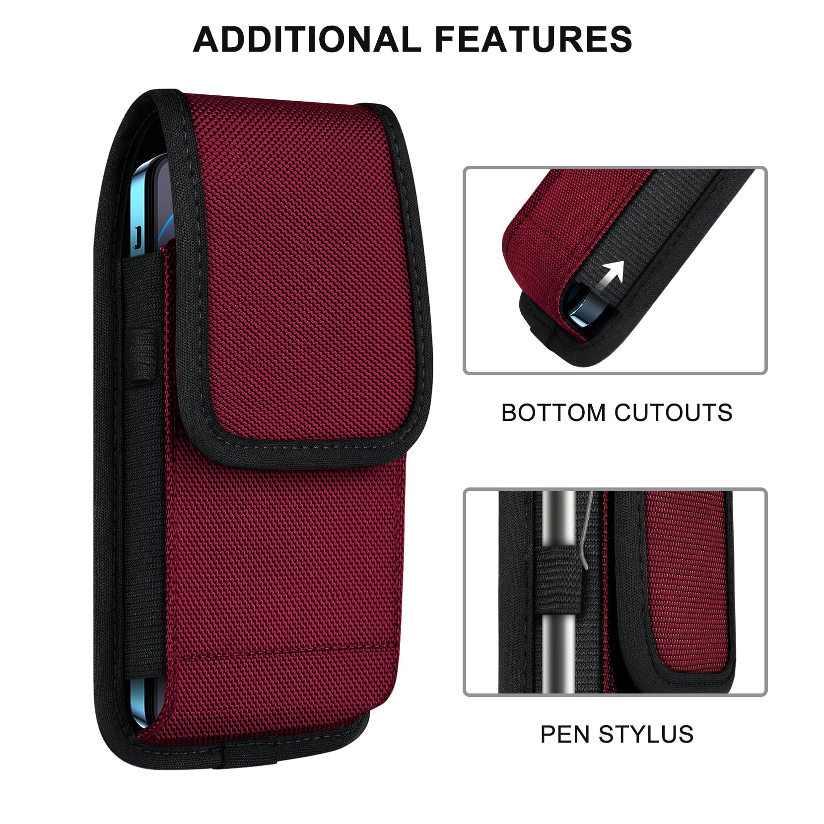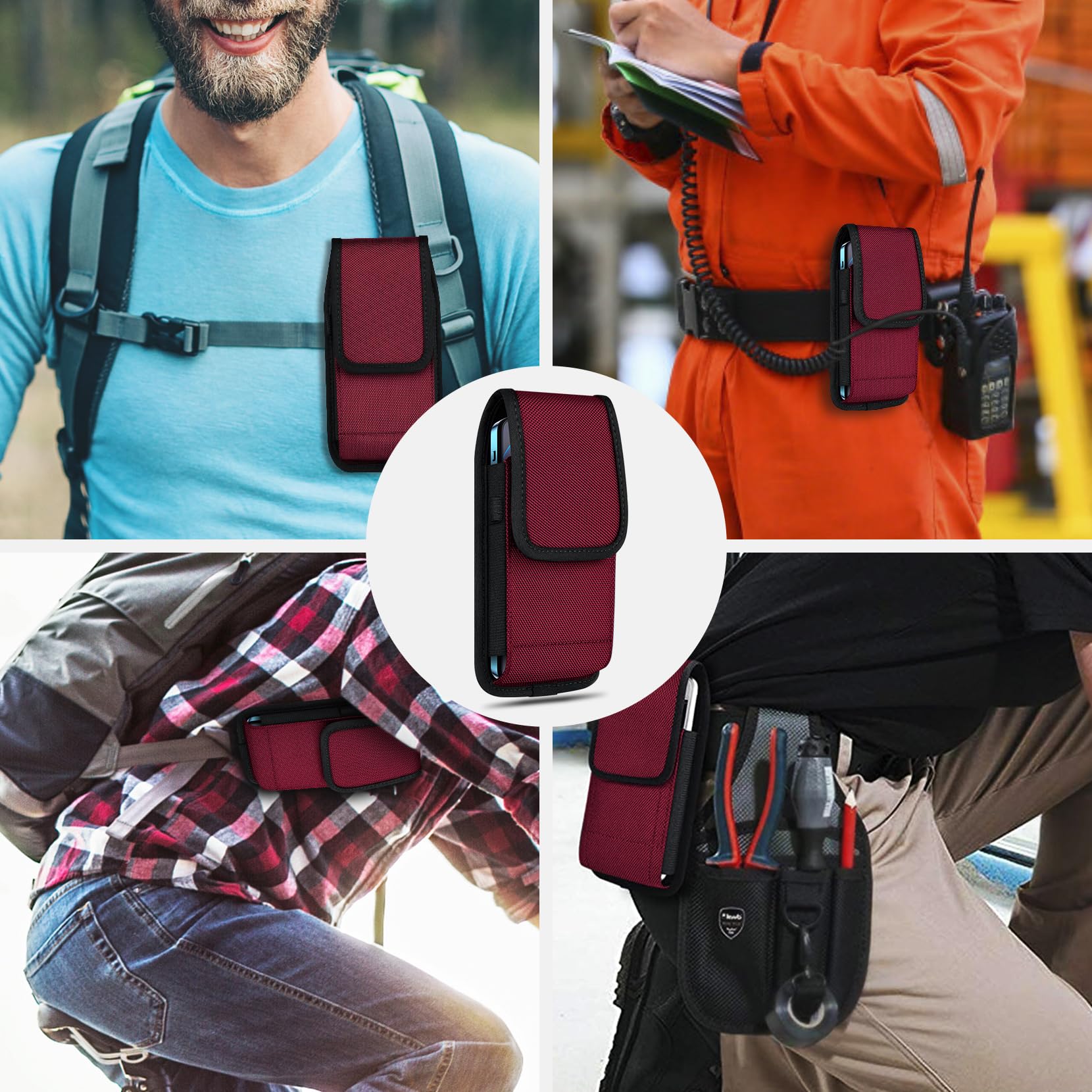 Premium Material: This cell phone holster with belt loop is handcrafted from nylon, fine and tight stitching and durable; Suitable for camping, hiking, outdoor-living, trekking