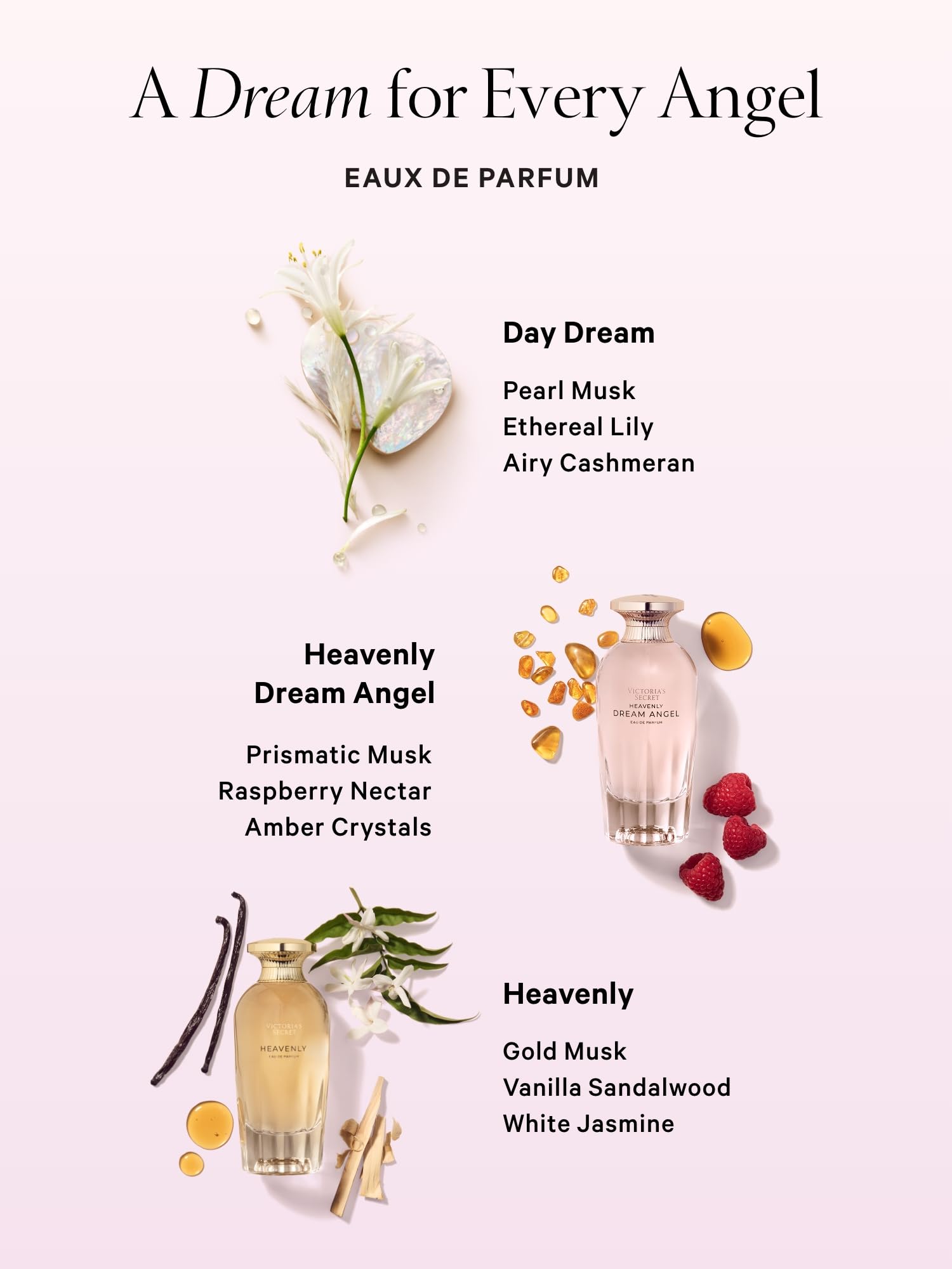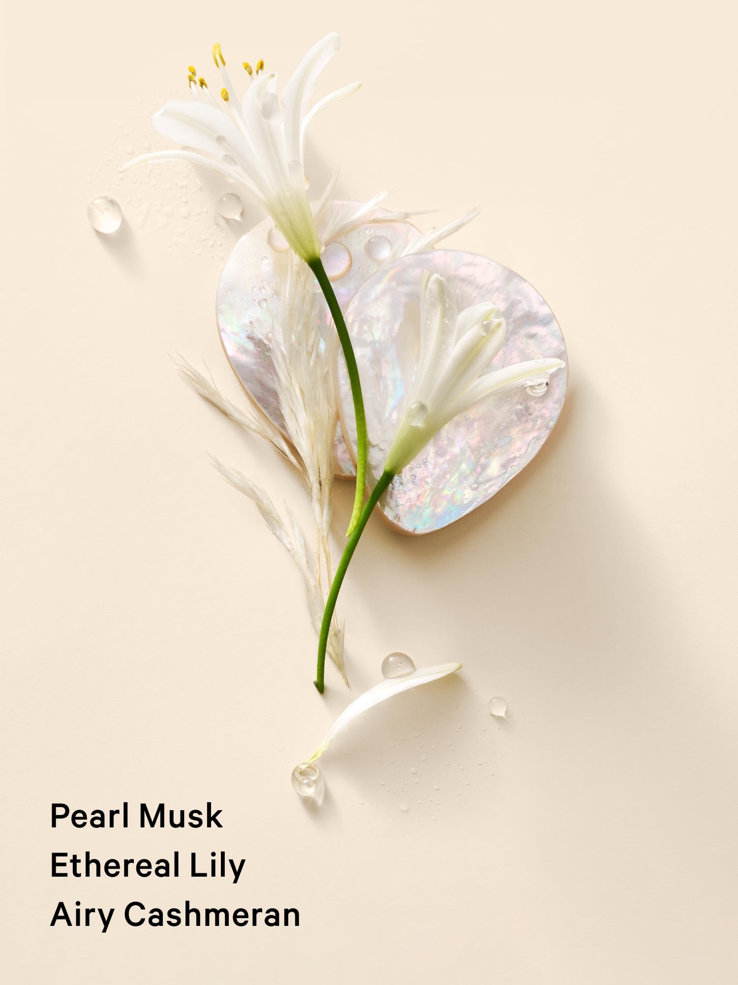 Fragrance type: Fresh Musk, Notes: pearl musk, ethereal lily, airy cashmere.