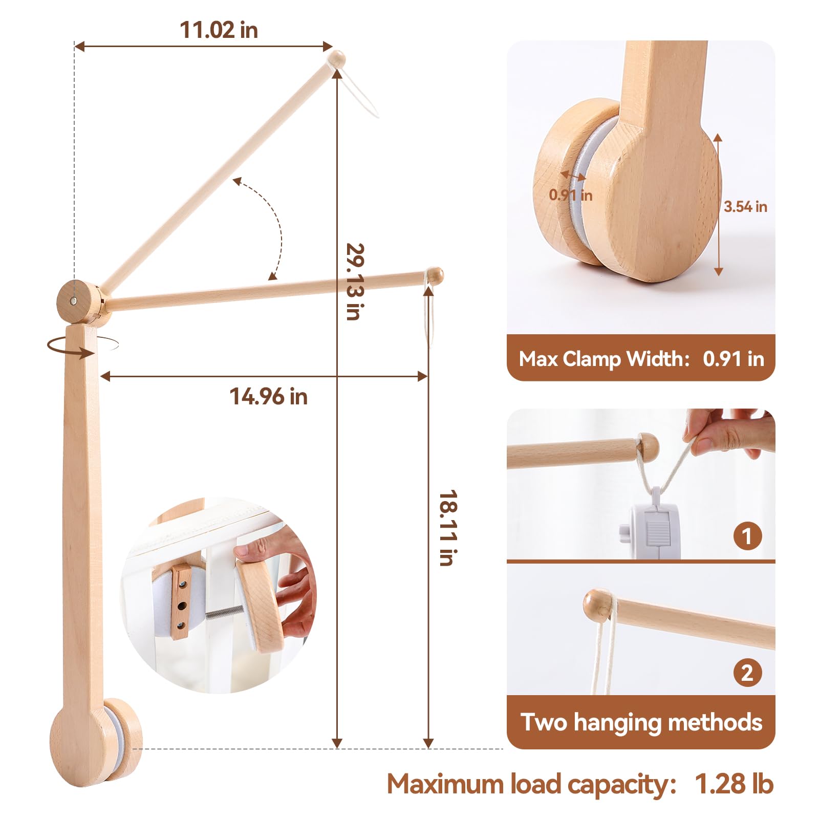 MOBILE HOLDER FOR CRIB: Made of Beech Wood οΌ This wooden mobile holder for cribs complements any nursery decor. Itβs a perfect choice to create a calm and soothing experience.