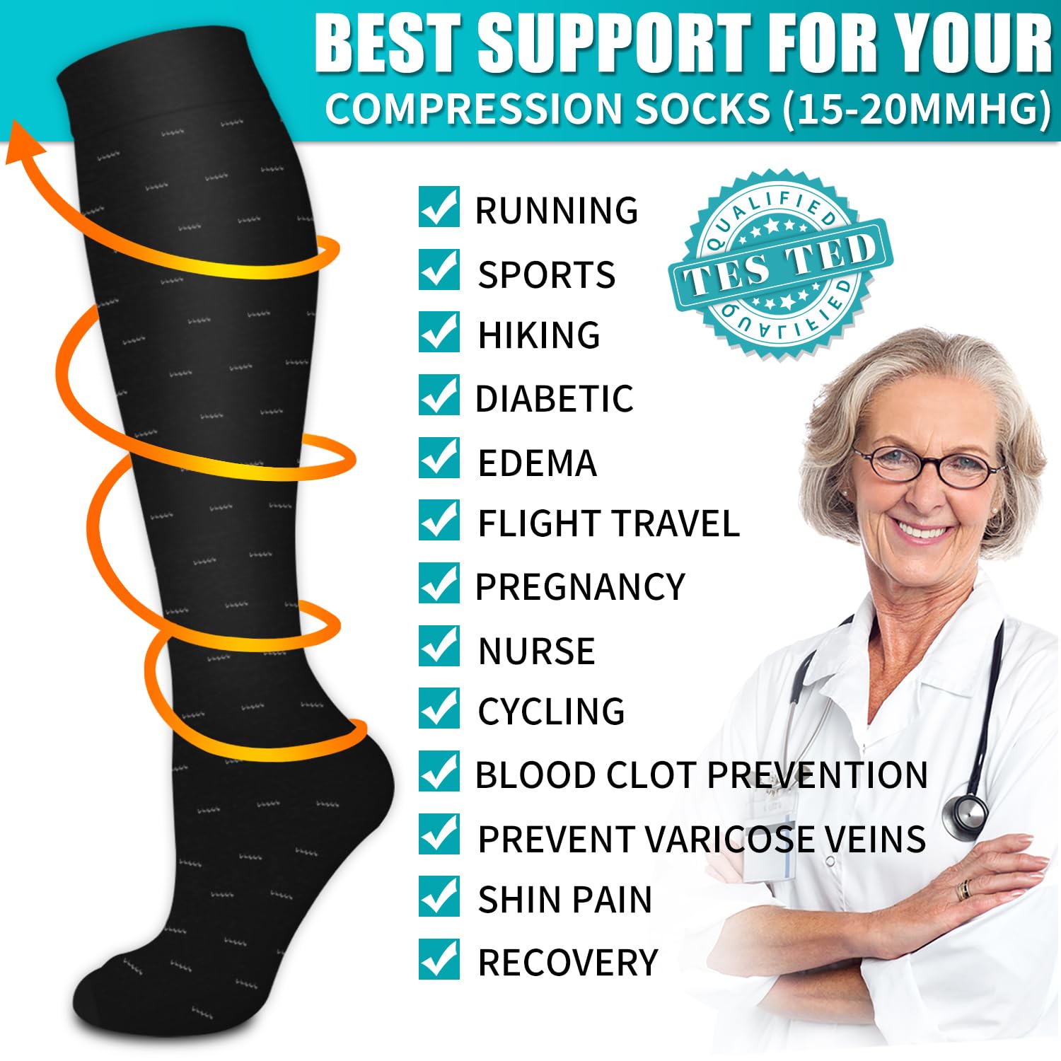 VALUE PACK - Each pack includes 6 pairs of compression socks. Our design of comfort and style comes at a very affordable price in comparison. There are available in different fabrics and colors. They are discreet and look like the ordinary socks you have already wear to work. Our socks are universally suitable for all work.Whether you are an athlete,teacher,flight crew,receptionist, office worker, pregnant, elderly ,they'll work for you as you work for yourself and your family.