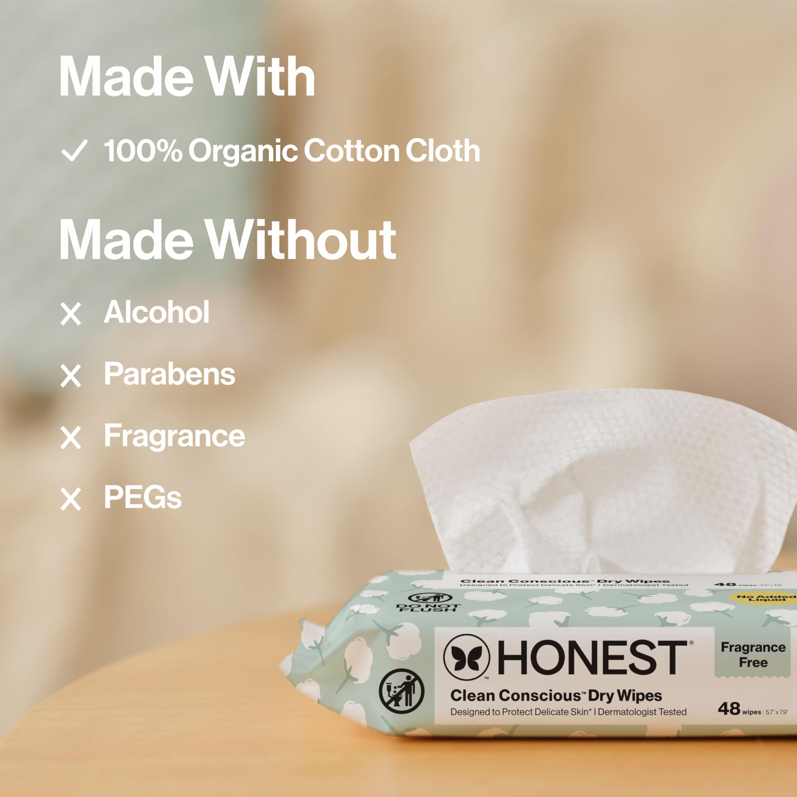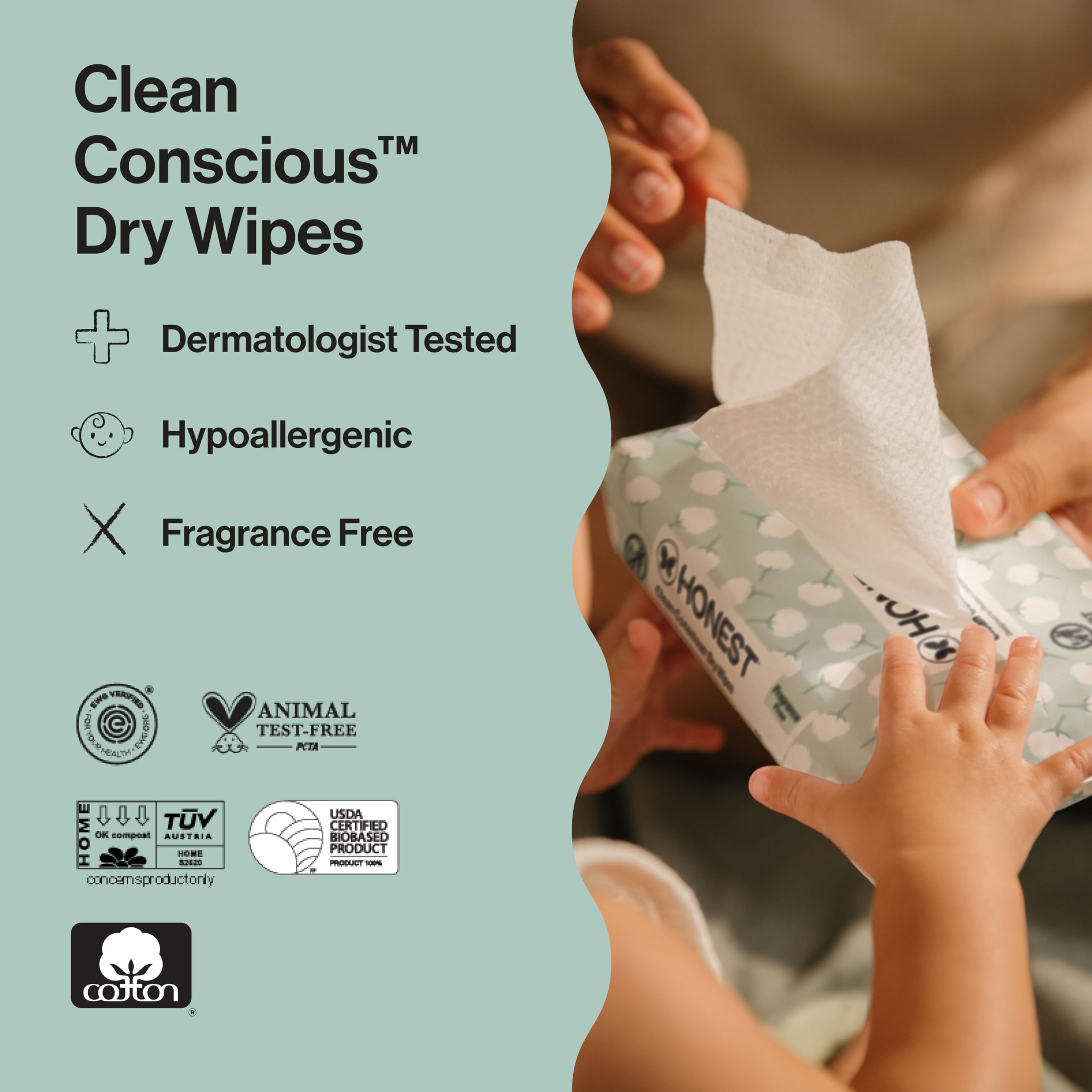 ORGANIC DRY WIPES: Made with sustainably sourced, 100% pure organic cotton (and nothing more), Honest Dry Wipes are made for everything and everyone, including newborns