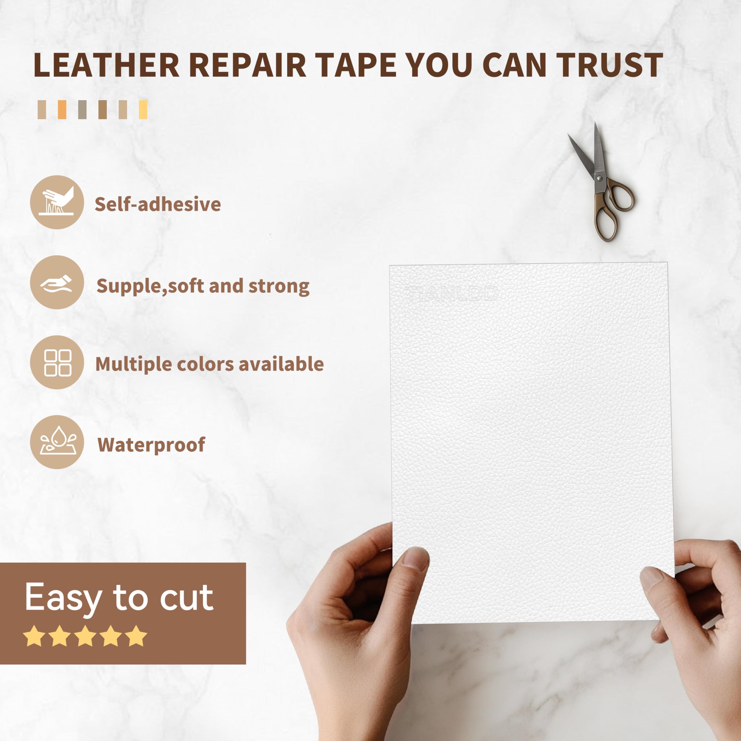 Self-adhesive & Easy to Use:Simply peel off the backing paper on the back of the leather patch tape and stick the patch on the sofa to perfectly repair all kinds of damages. The patches have strong adhesive force and soft texture, whether it is the edge of the seat, or curved uneven surface, it can be perfectly