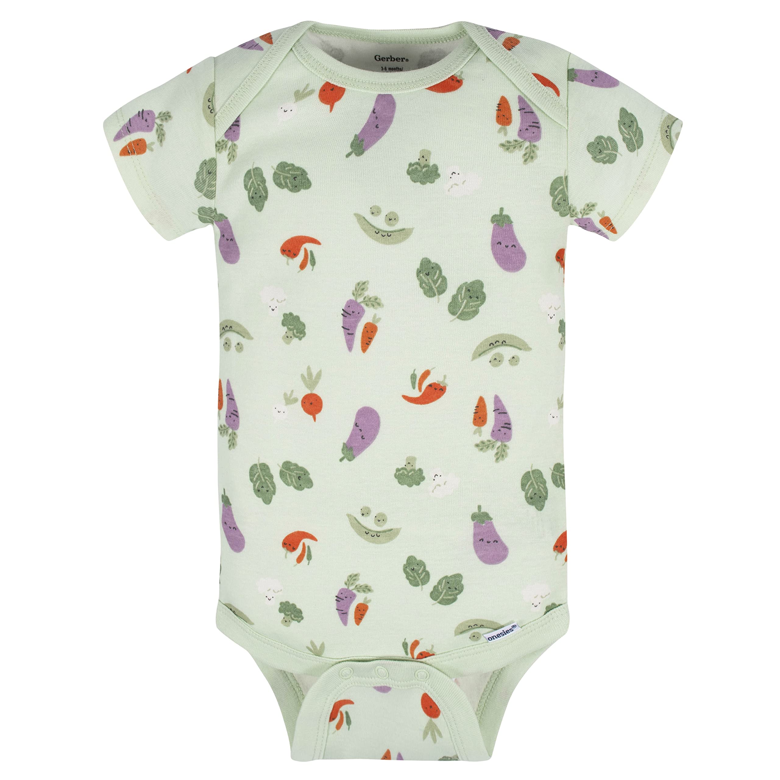 Description Your little girl will start the day looking her best dressed in one of these Gerber Onesies brand short sleeve bodysuits! Moms and dads will appreciate the higher-in-the-front bottom nickel-free snaps closure that makes for fast and easy diaper changes. 100% cotton rib for breathability and comfort. Mix and match with your favorite bottoms to create a complete look. An essential item for new parents, great for gift giving.