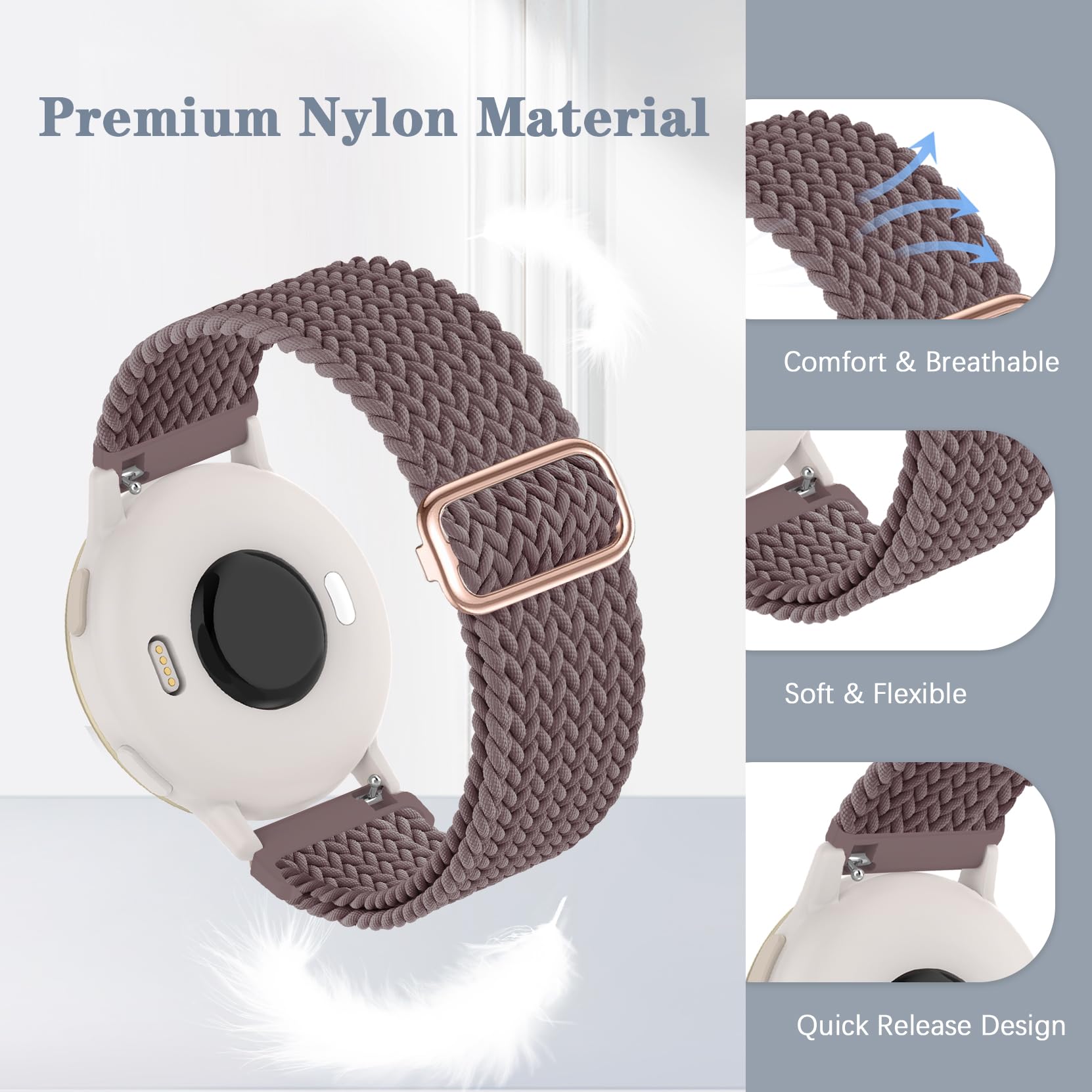 【Stretchy & Breathable】Crafted from premium elastic nylon material, these braided wristbands for vivoactive 5 watch band offer superior breathability, durability, and lightweight comfort, making them ideal for everyday wear.