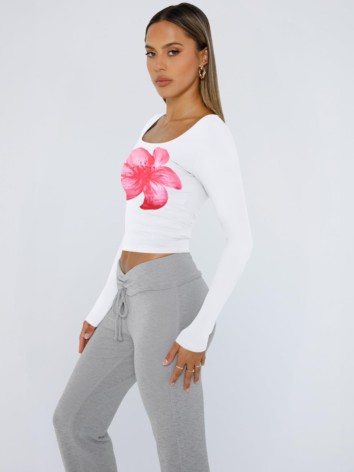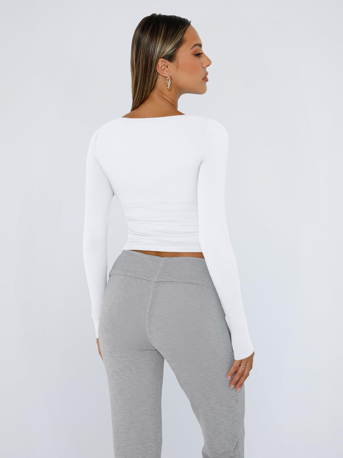 Y2K-Inspired Design: Features a clean tailored cut that can be worn full-length or folded into a cute crop top. With a body-hugging fit, distinctive square neckline, long sleeves, and a sleek yet casual Y2K aesthetic