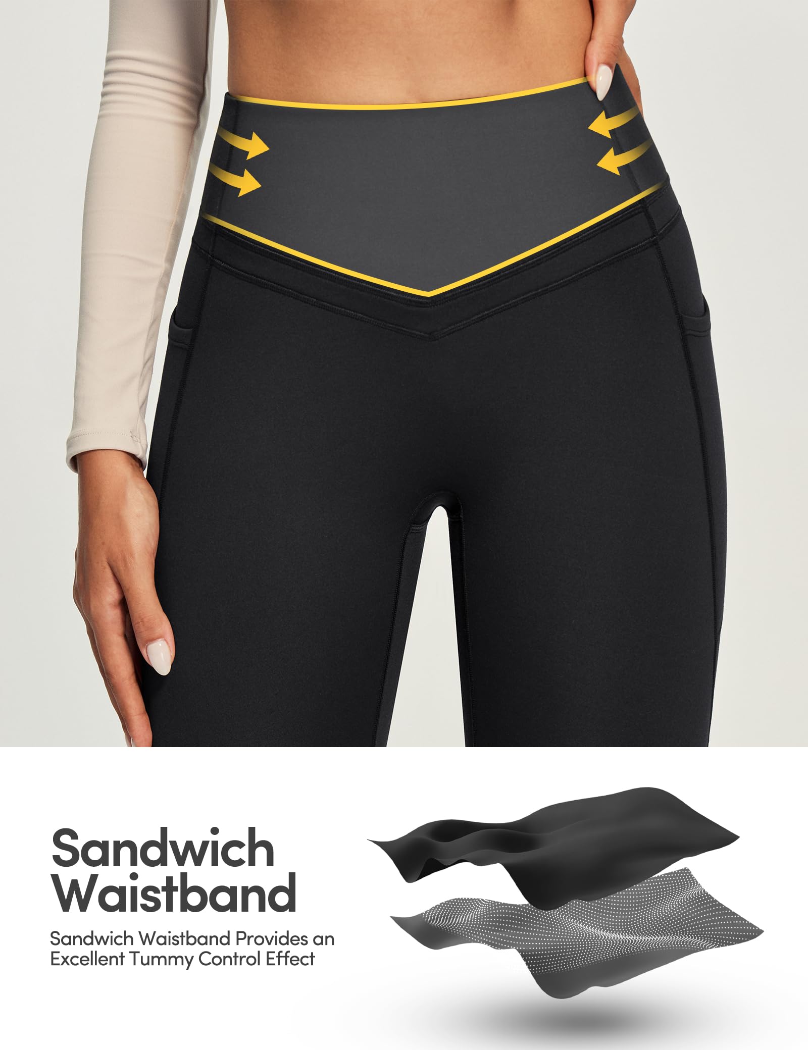 Sandwich Waistband for Tummy Control: These compression leggings for women combine a 5.9" double-layer fleece design with high-stretch mesh for tummy control that sculpts while keeping you warm. A hidden 2cm elastic band prevents slippage, ensuring these leggings for women tummy control stay securely in place during any movement without pinching or rolling