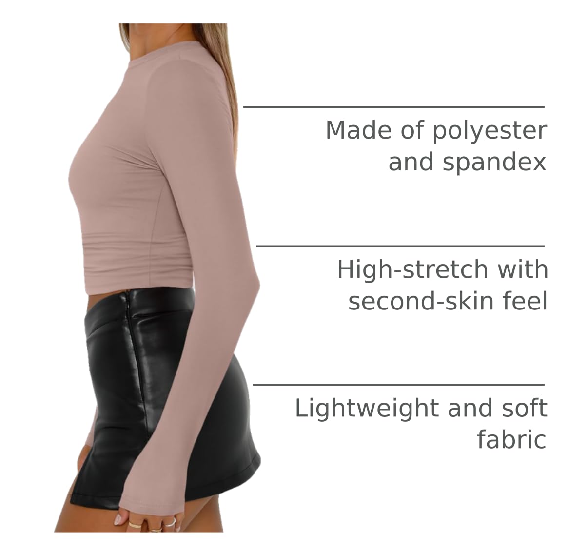 Design: Cropped and stretch fitted style,crew neck, tight underscrubs layer,you can wear it regularly or fold it up like a crop top,cute,slim fit,casual y2k style fashion
