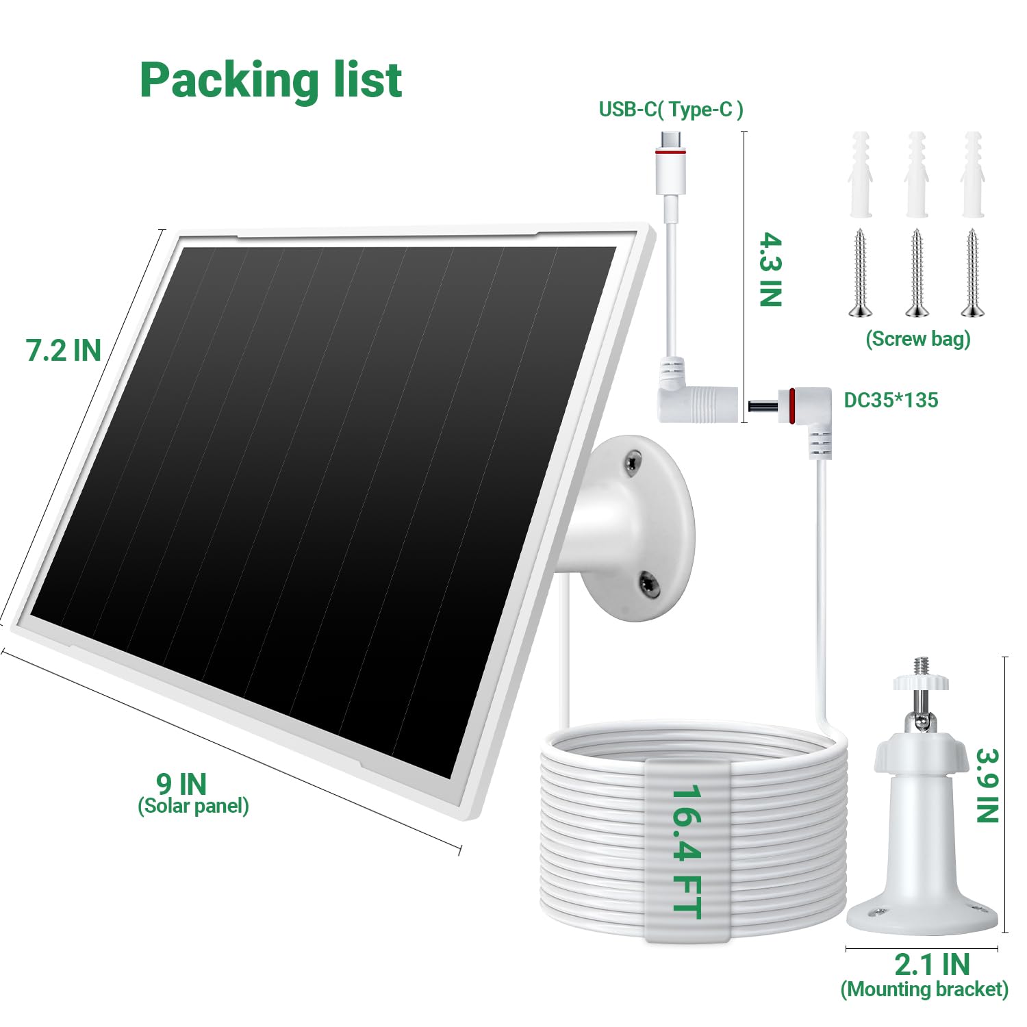 【Compatible with】The solar charger designed for ring outdoor battery cameras, compatible with ring USB-C input cameras: Ring outdoor cam plus, Ring stick up cam pro, Ring spotlight cam plus, Ring spotlight cam pro; barrel plug input cameras: Ring outdoor cam (stick up cam) battery / solar(2nd and 3rd Generation), spotlight cam battery, spotlight cam solar; not compatible with outdoor cam (stick up cam) (1st Generation)&doorbell series & plug-in / wired camera versions.