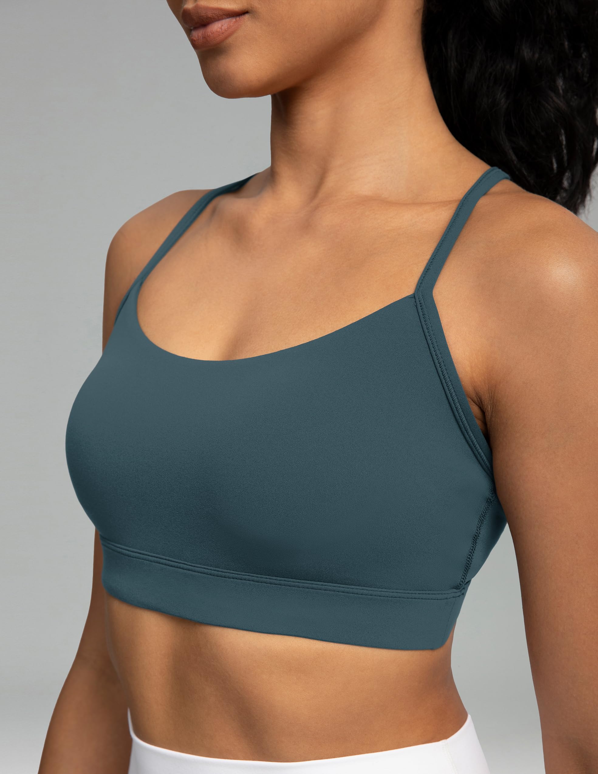 Crafted with removable chest pads and spaghetti thin strap, the backless yoga bras offer both style and functionality.