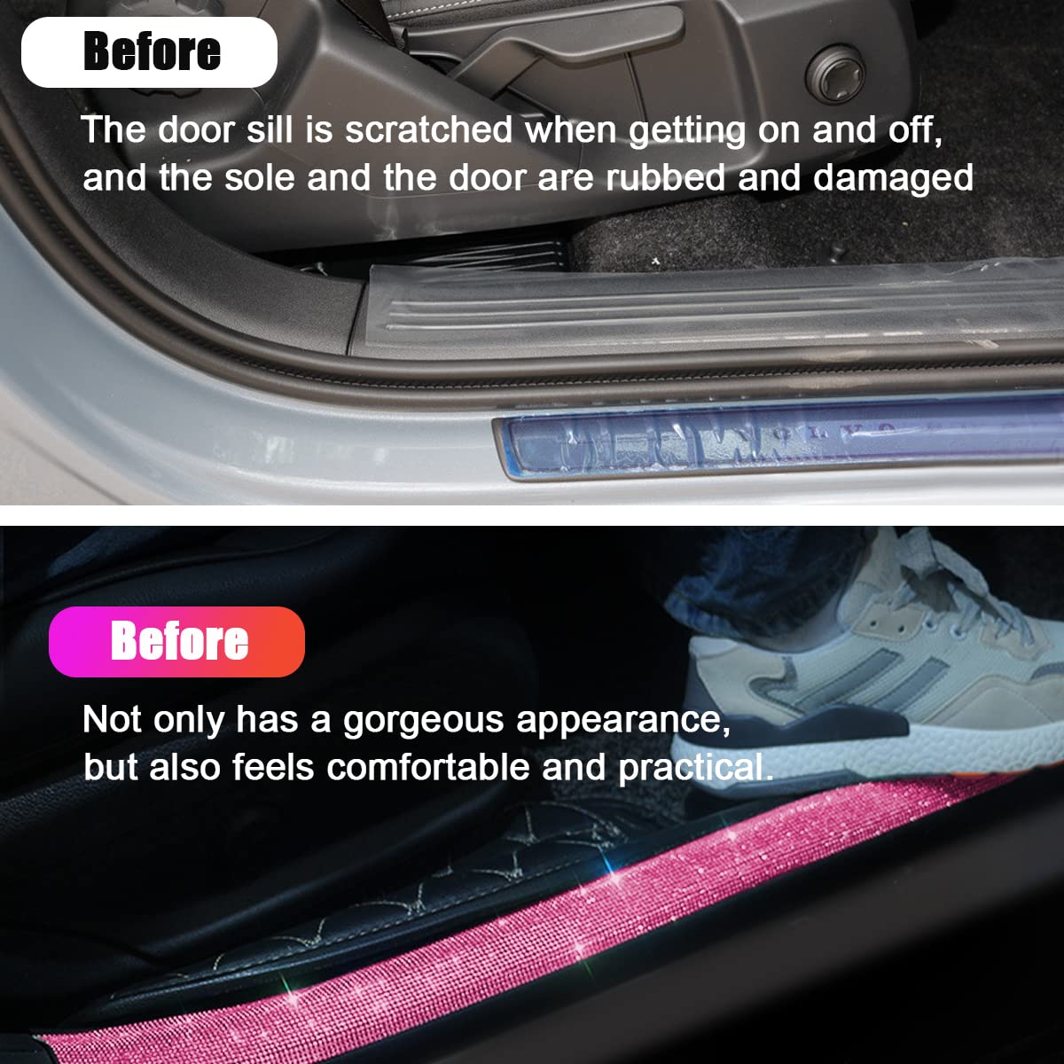 High-quality Material - Made of upgraded carbon fiber rubber material, features excellent scratch resistant, waterproof performance against cold/heat/aging/UV, very durable that can be used for a long time. Covered with thousands of shiny rhinestones, which can make your car looks more exquisite and stylish, upgrade car level as well! these rhinestones are not easy to fall off and break, you can buy with confidence!
