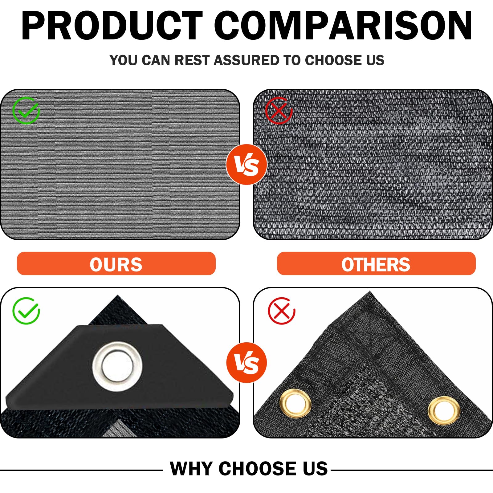 Reinforced Edge Design: All edges of our sun screens for patio are reinforced with double stitching, the frame is very stable and comes with aluminum grommets. With excellent durability, sun screens for patio can protect you in all weather conditions, whether it's hot summer days or rainy days.