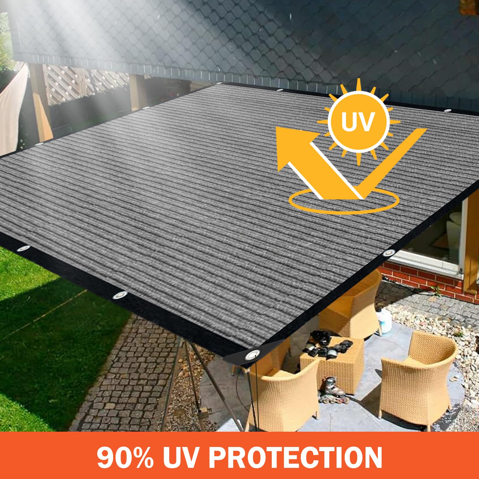 90% Sun Shade Rate: The sun shade cloth with grommets can provide up to 90% UV blocking, with powerful sun protection and UV protection. In addition, sunshades for patio pergola cover has windproof, heat-insulating, breathable and ventilated functions to protect you from high temperatures and sunburn. High-quality pergola shade cover canopy provides cooling for your pavilion and terrace, improving your outdoor living experience.