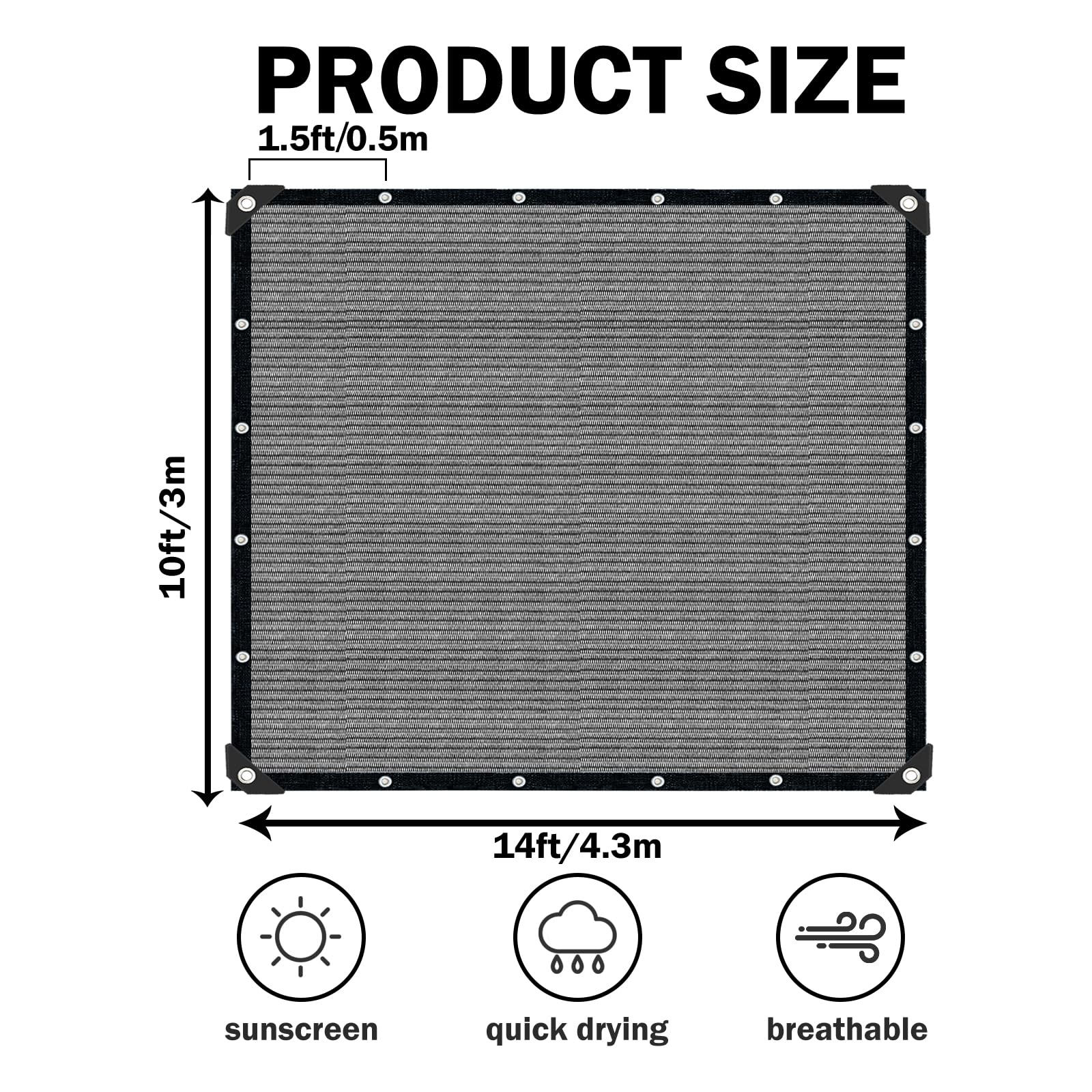 Premium Material: The shade fabric is made of high-density polyethylene (HDPE). It is a high-quality knitted fabric with excellent tear and abrasion resistance. At the same time, sun screens for patio allows the circulation of air and light, ensuring good ventilation and temperature control; its design allows rainwater to pass through and prevents water accumulation.