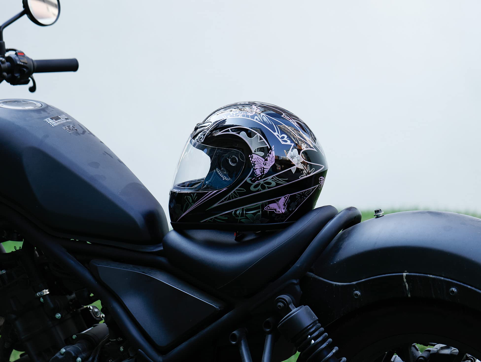 Pink White Butterfly Full Face Helmet