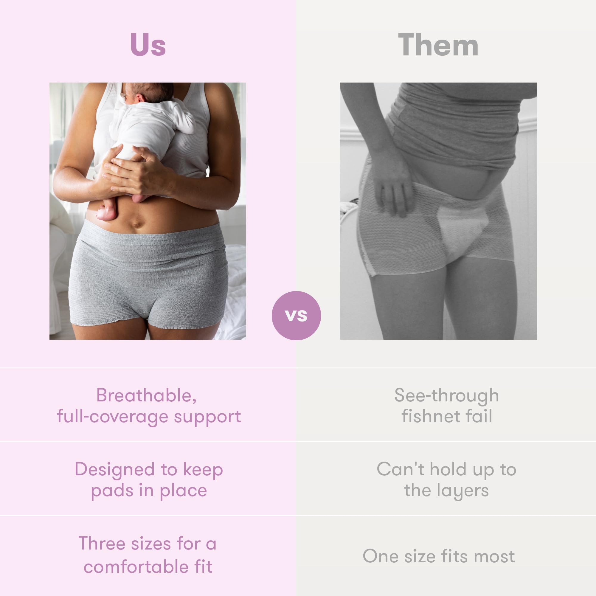 STRETCHY SUPPORT: Designed to keep pads and other postpartum essentials securely in place without compromising comfort.