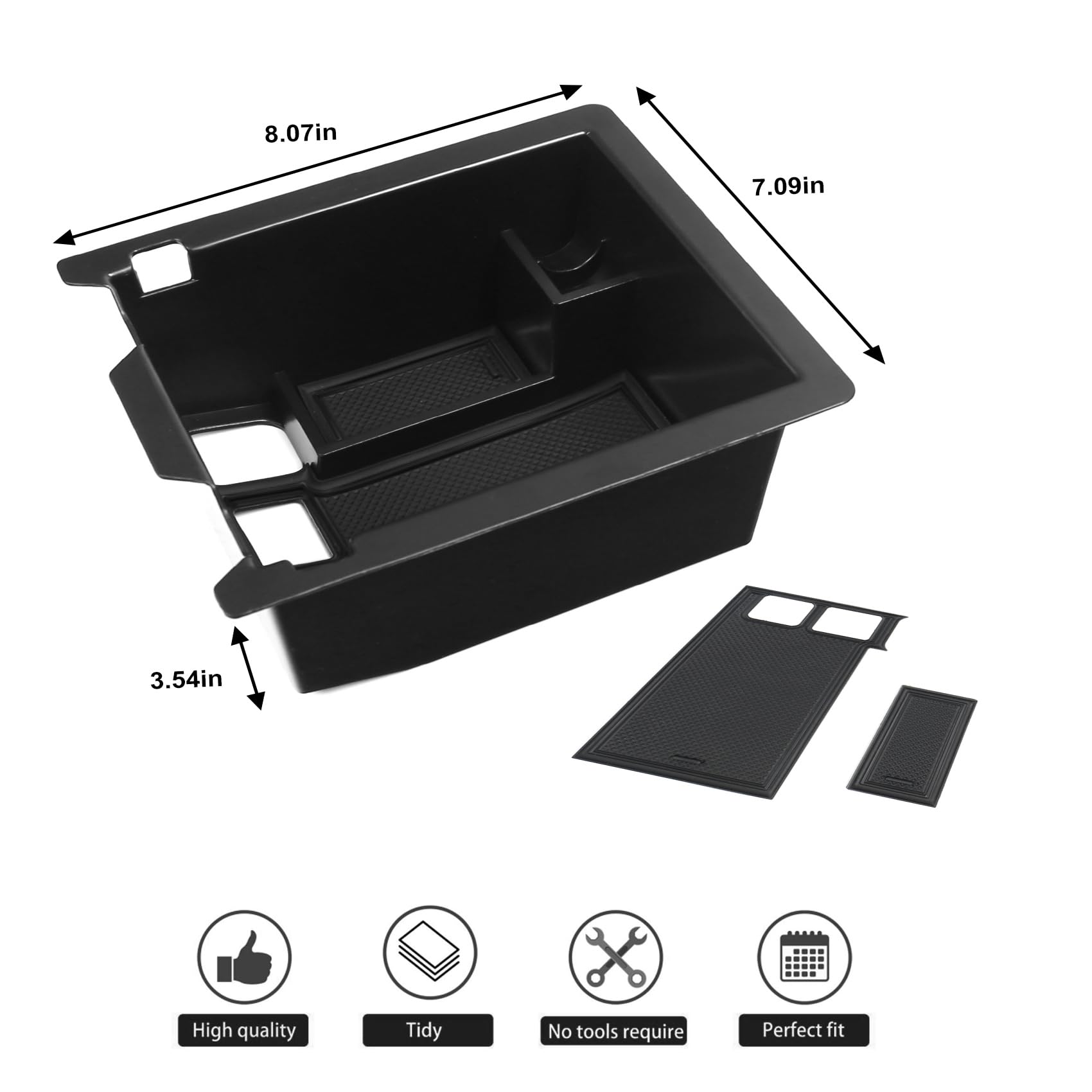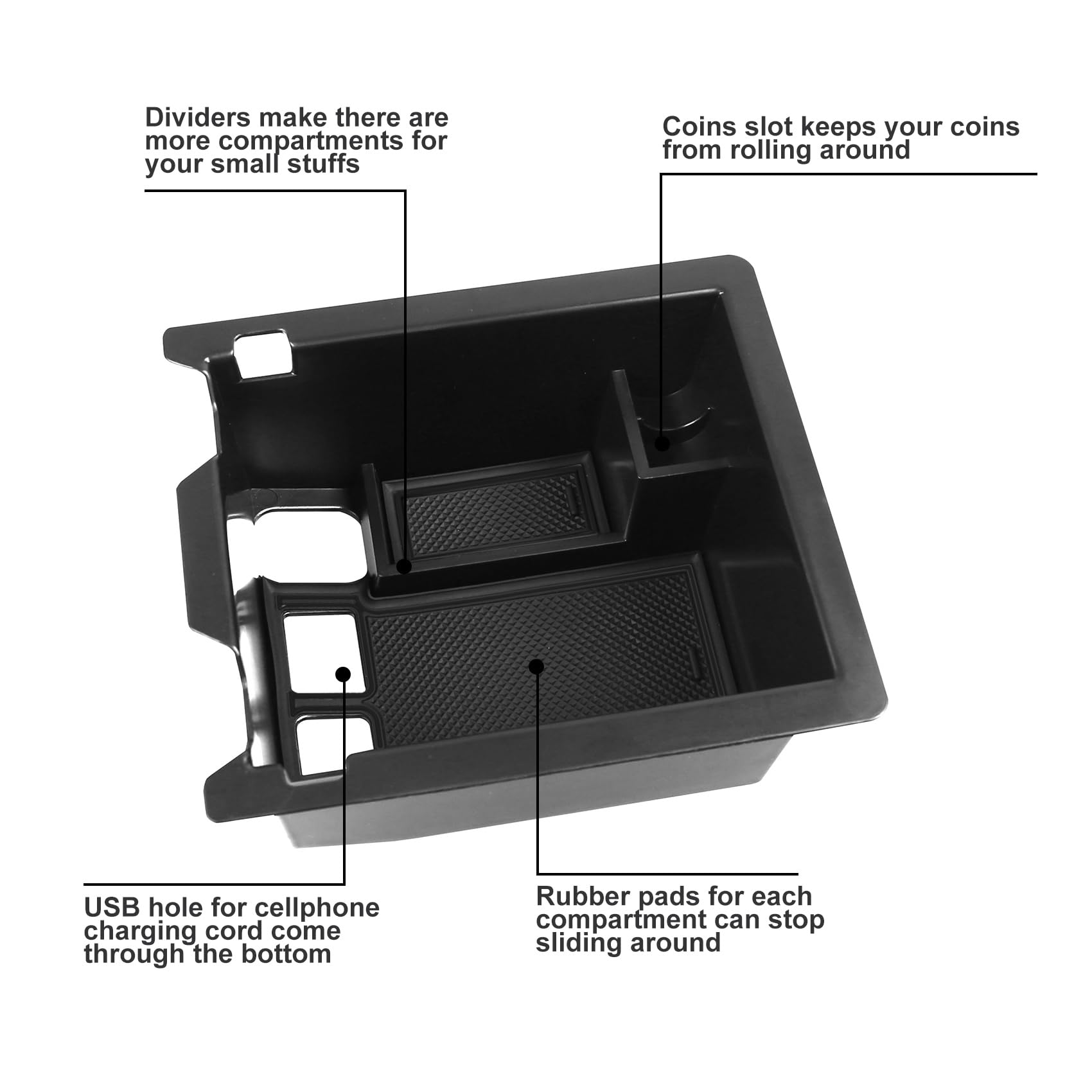 Anti-Slip Silicone Mat:The Center Console Organizer features an anti-slip silicone mat that keeps your items securely in place, preventing unwanted movement while you drive.