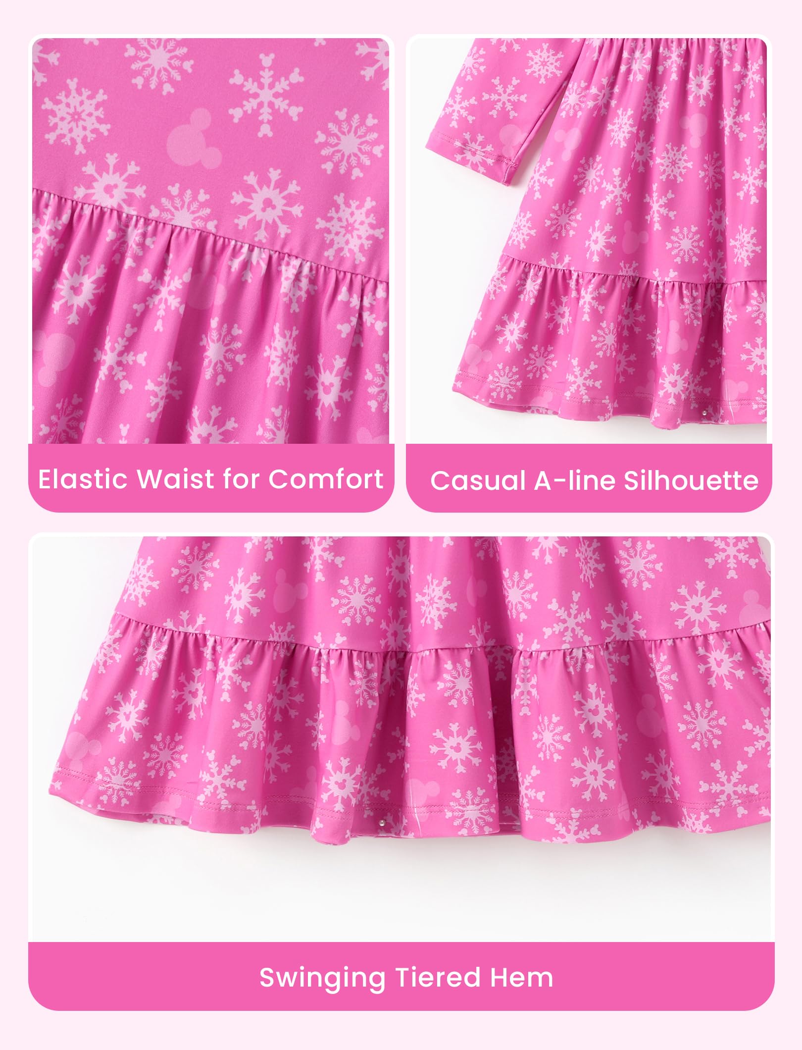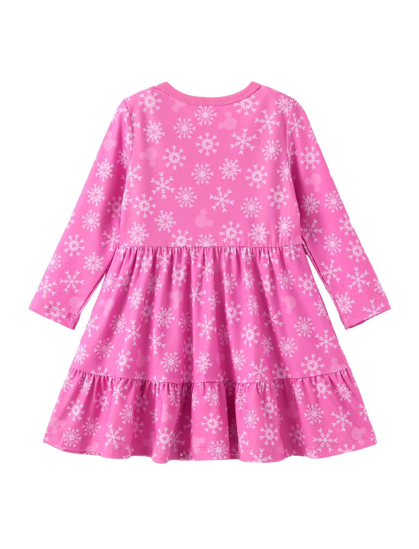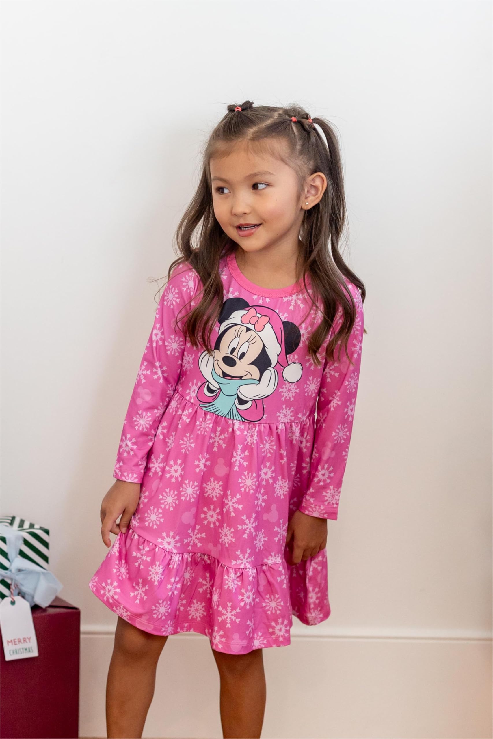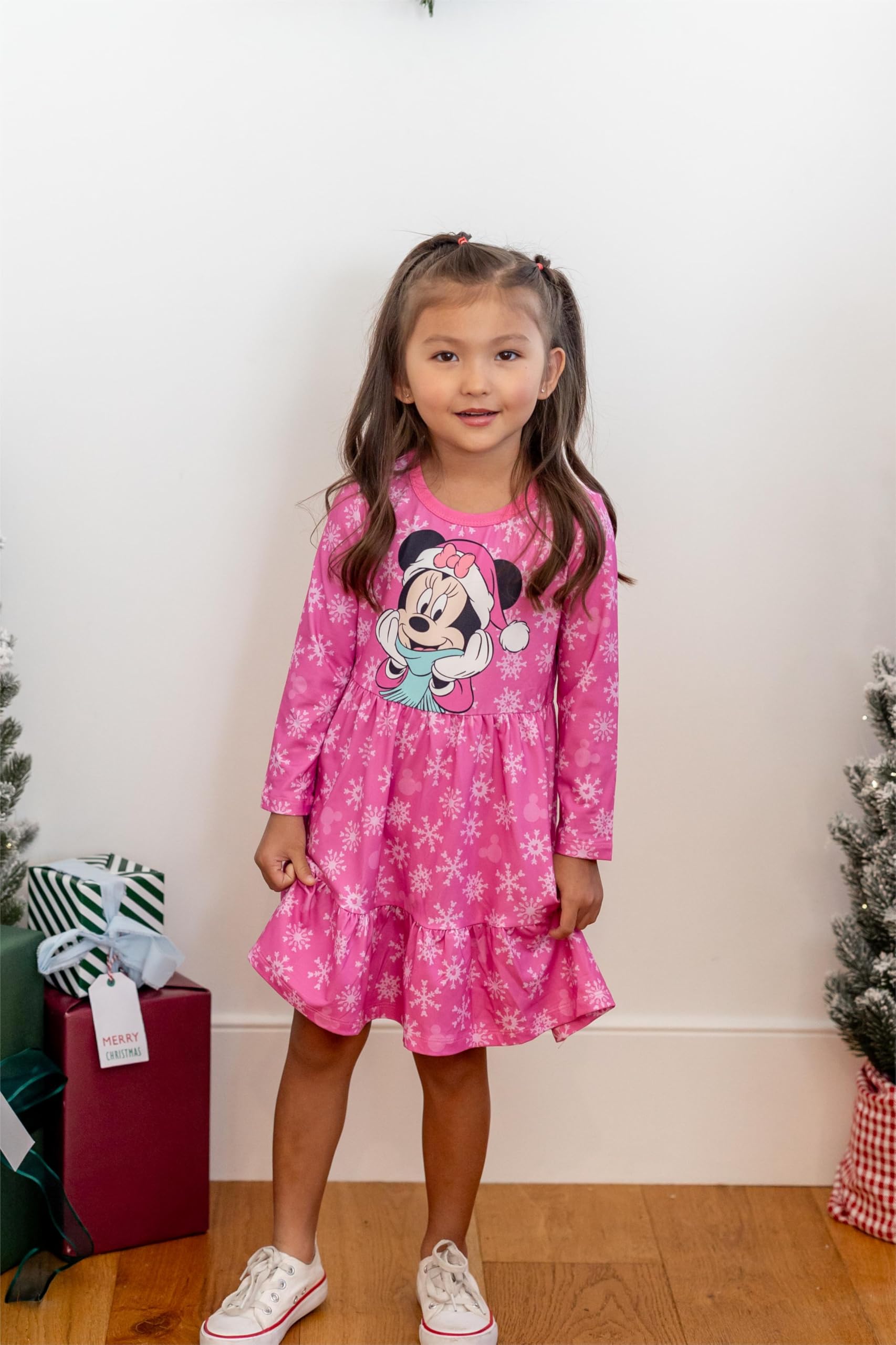 Charming & Festive Design: Let your little one enjoy the winter season with this Disney Minnie Mouse dress! Featuring Minnie in a cozy winter outfit with snowflakes, this dress is perfect for the holidays. The pink background and frilly skirt add a festive touch. Ideal for kids aged 2-6, this long-sleeve dress offers style and warmth for winter outings, school, or Disney events