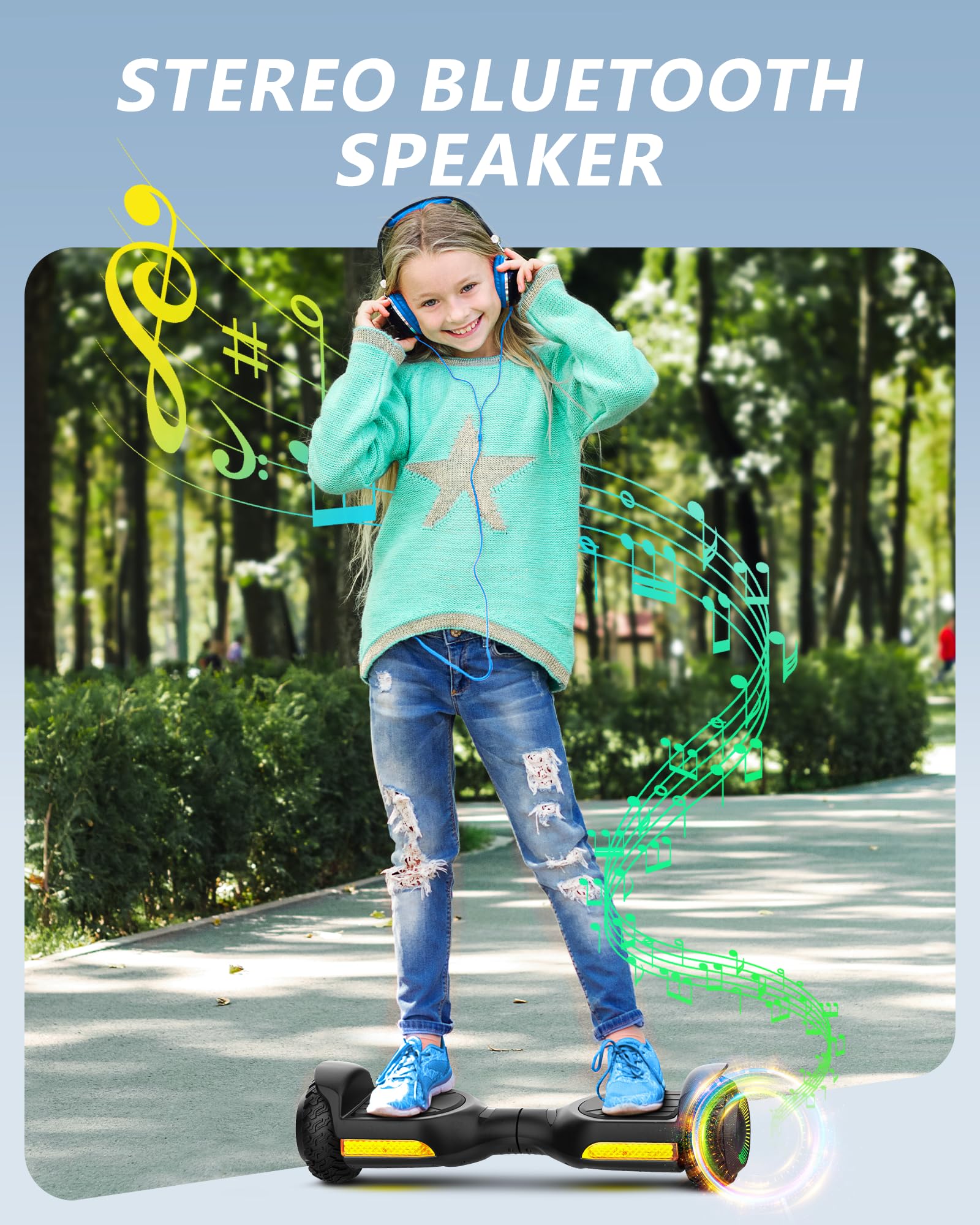 Music Speaker - Built-in high-quality Bluetooth speakers allow you to connect your smartphone or device to play your favorite music. Make your new self balancing scooter for kids the coolest one with extraordinary sound effect.