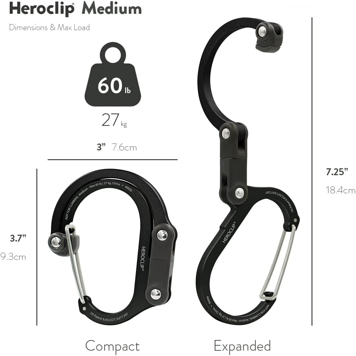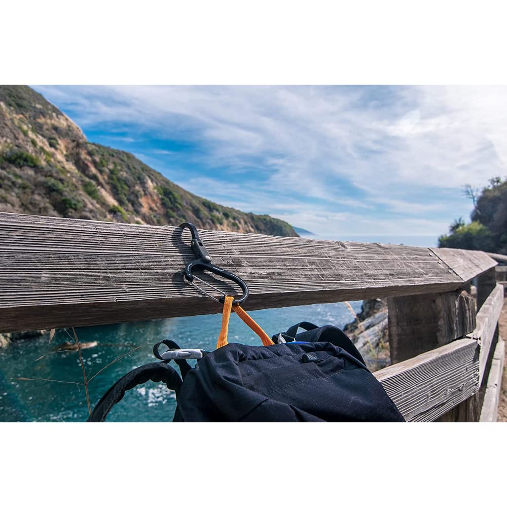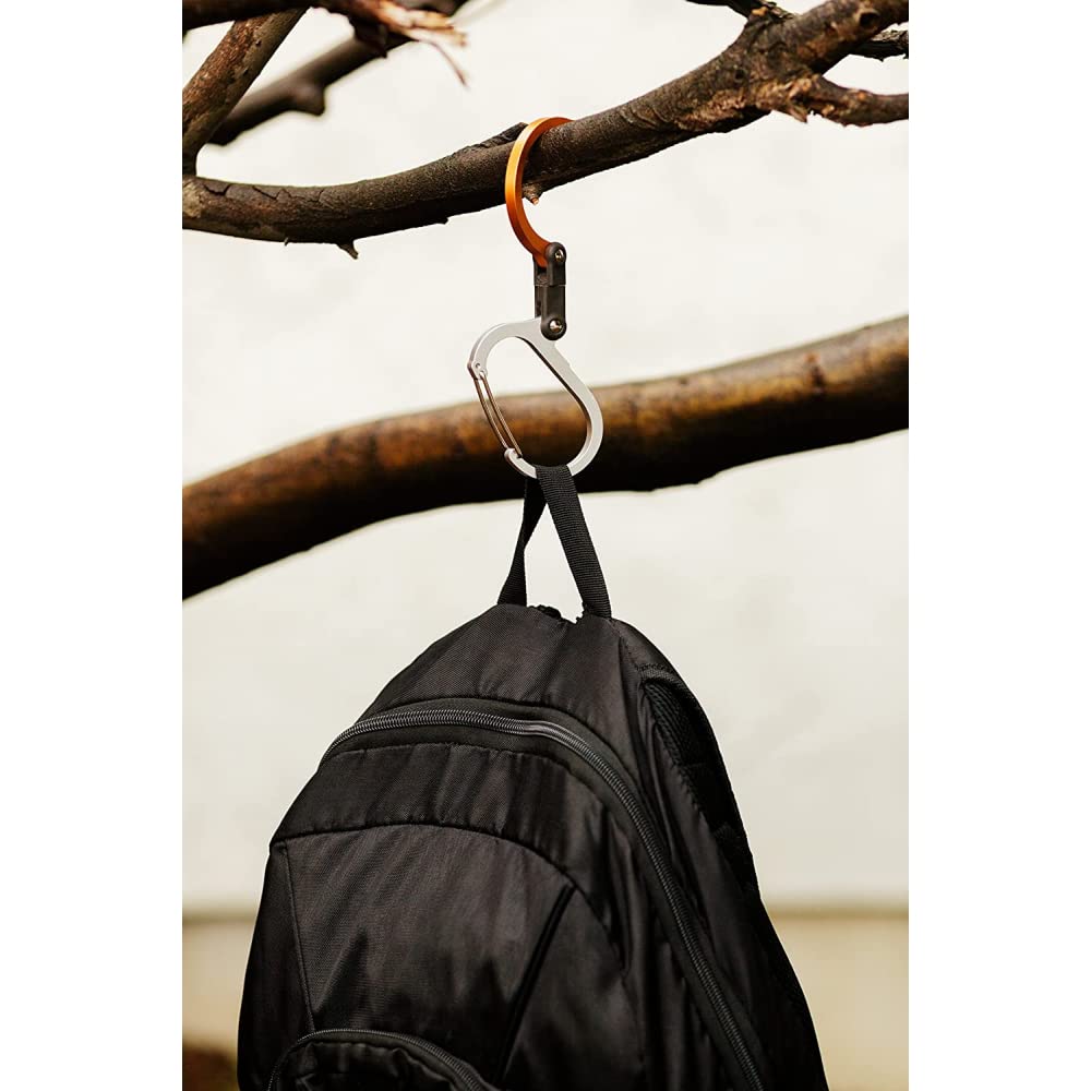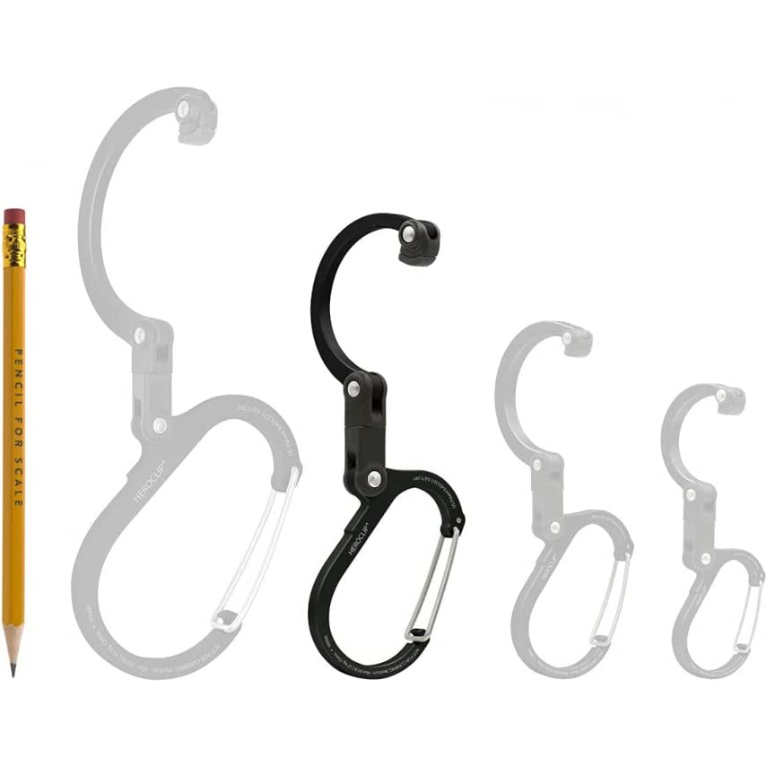 The ideal size for handling large and awkward items, Heroclip Medium gear clip lets you hook and hang big backpacks from trees, duffle bags from fences, buckets from ladders, and carry-ons from bathroom stalls. The versatile gear clip hangs securely, rotates 360°, and folds compactly in ways other carabiners, clips and hooks can’t, helping you keep your gear organized and exactly where you want it, no matter the activity. The wide carabiner clip gate accommodates bigger stuff compared with standard carabiners and clips, so you can secure anything from extension cord bundles to multiple shopping bags. The hook features a grippy rubber tip for hanging bags and purses from tables and other flat surfaces. Perfect for travel, hiking, backpacks, totes, cables and extension cords, buckets, strollers, purses, shopping bags, suitcases, kids gear, dog leashes, horse bridles and tack, first aid kits, ropes, growlers, trailers, helmets, boots, DIY, EDC, and more.