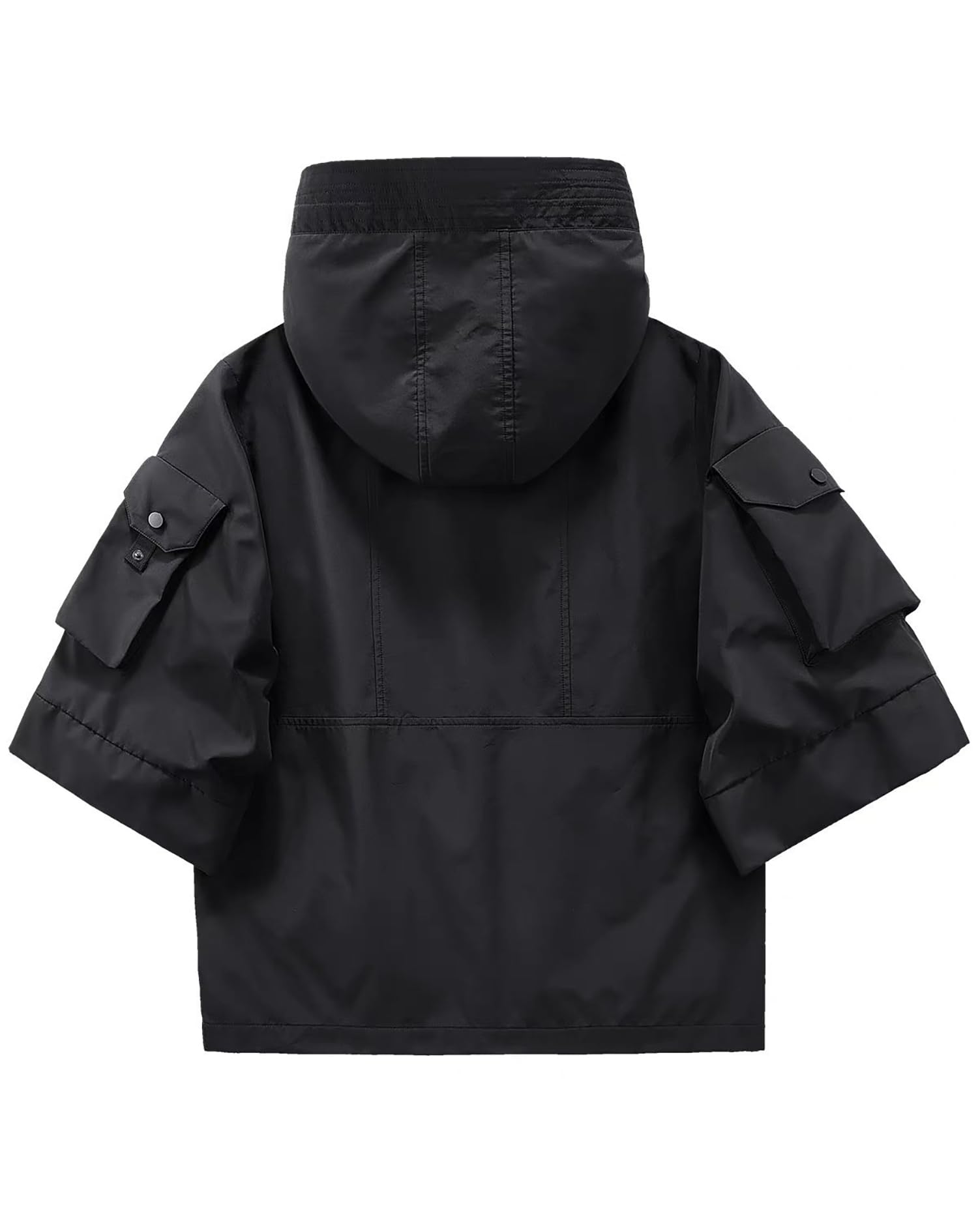 Niepce Inc Japanese Streetwear Techwear Men’s 3/4 Sleeve Jacket with Hood (Black1, Large)