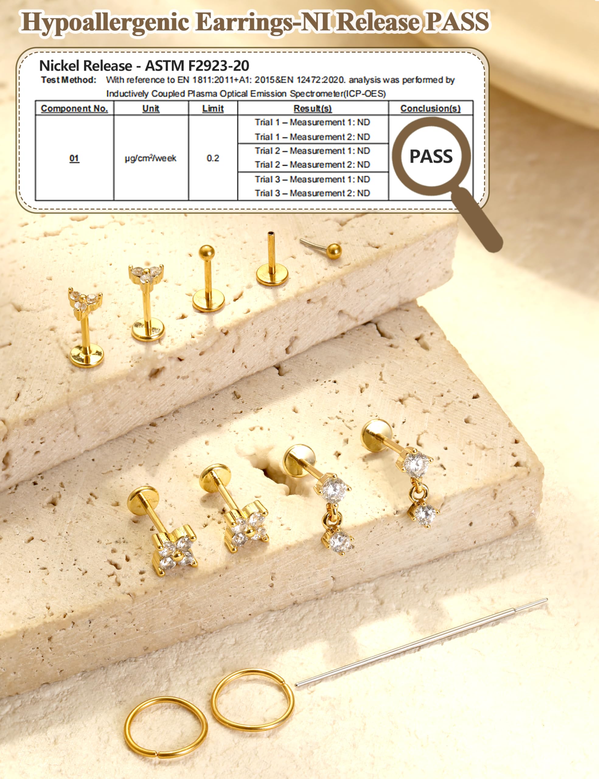 Hypoallergenic Flat Back Studs: These earrings studs Made Of 316L Stainless Steel,which is the ideal choice If you have sensitive skin.Our flat back stud earrings has passed The Anti-allergy Test,Waterproof Test.Nickel and lead-safe,non-irritating,The push in earrings stud with smooth polished surface,Surface electroplating 18K gold tone,safe and durable,never turn your skin green, designed to prevent irritation and discomfort for extended wear.Dainty Small earrings are lightweight,Even if you wear several earrings stacks together, wonβt put any strain on the ear