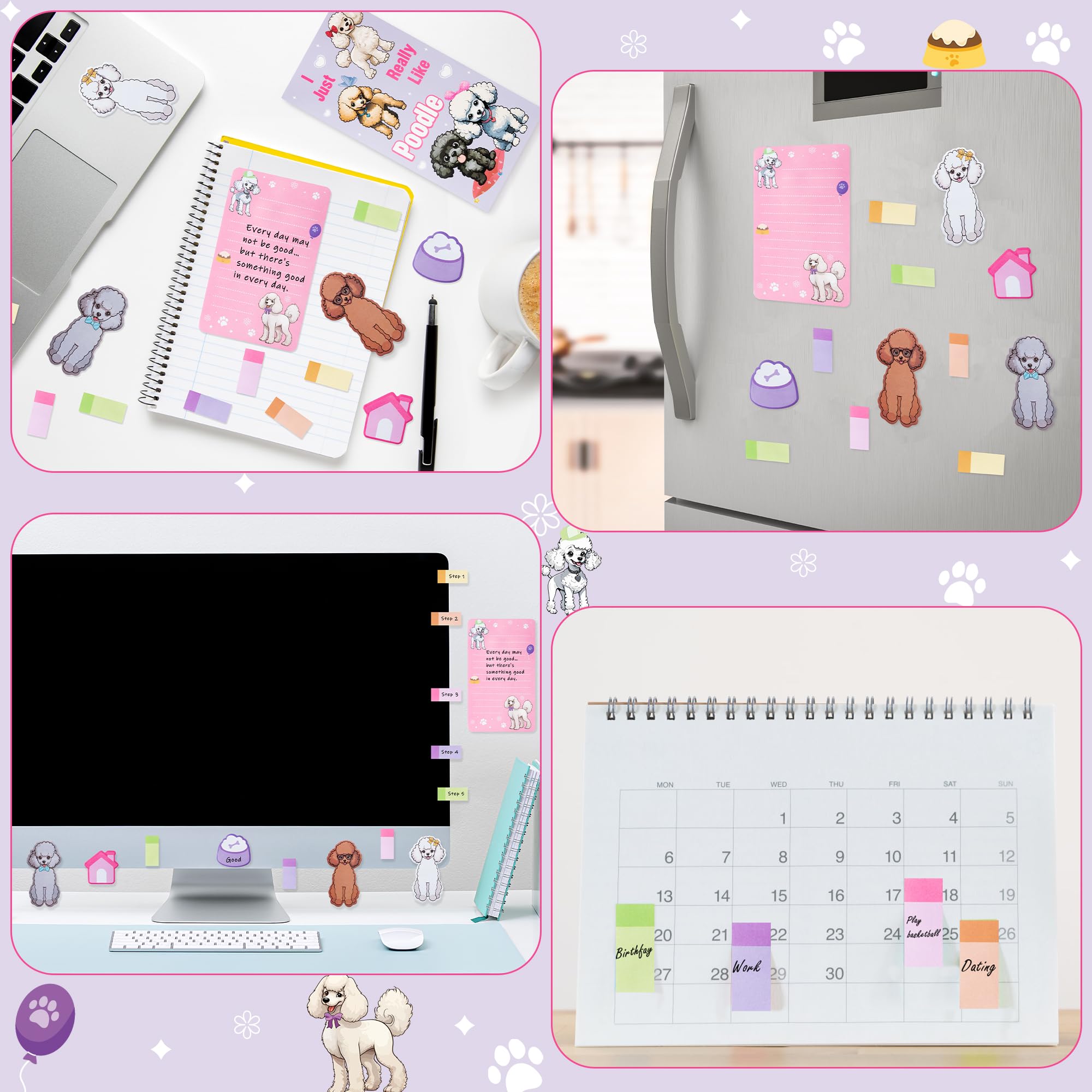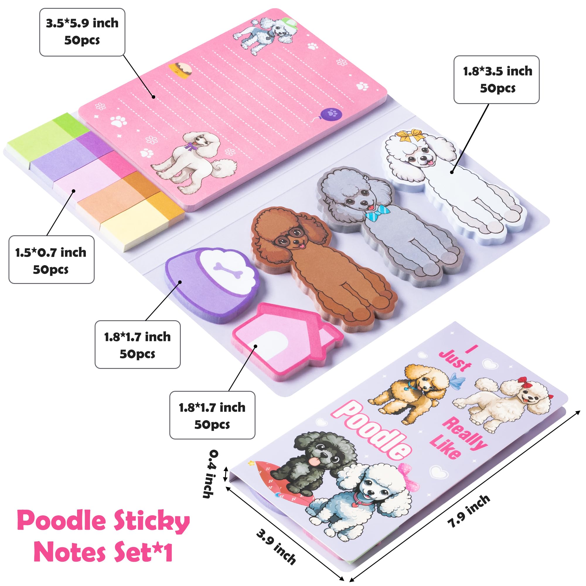 Poodle Sticky Notes Set: You will get a set of sticky notes, including many self-adhesive note pads in different styles and sizes. 50 sheets per pad, 550 sheets in total. Meet your various needs