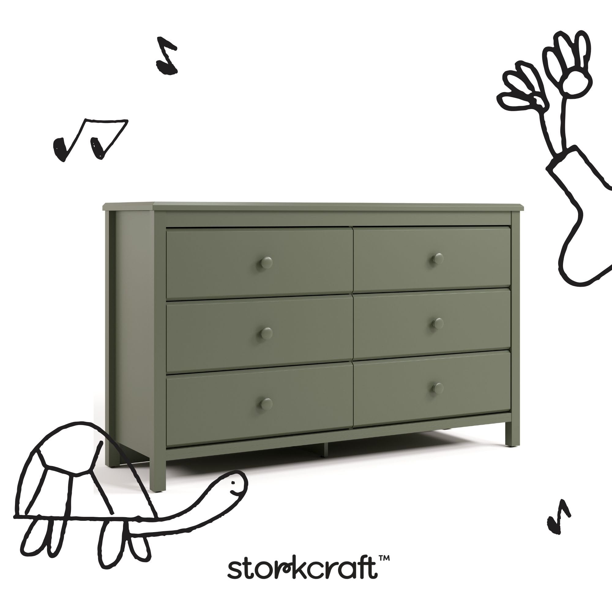 Introducing the timeless and versatile Storkcraft Alpine 6 Drawer Dresser — a practical choice for babies and kids that's easy to match with any nursery or bedroom style. To make the Alpine even more special, it features Storkcraft’s innovative, safety-focused interlocking drawer system, which allows only one drawer to open at a time. When used with the included furniture anti-tip kit, this system helps reduce the risk of furniture tip-overs. The Alpine is GREENGUARD Gold Certified, meaning it has been screened for over 10,000 chemicals and VOCs that can pollute indoor air — making it a cleaner, healthier choice for your home. Its durable laminate finish is tested to meet or exceed applicable ASTM and CPSIA safety standards. Designed to grow with your child, the Alpine offers six spacious drawers and transitions seamlessly from nursery to kids' room. Storkcraft has earned industry recognition from Fast Company, Parents, the Baby Innovation Awards, and more — and is proud to hold the Parent Tested Parent Approved (PTPA) Seal of Approval for nursery and children’s furniture. The Alpine is backed by Storkcraft’s real-life Customer Care team and a 1-year limited manufacturer’s warranty. Assembly required; two people recommended.