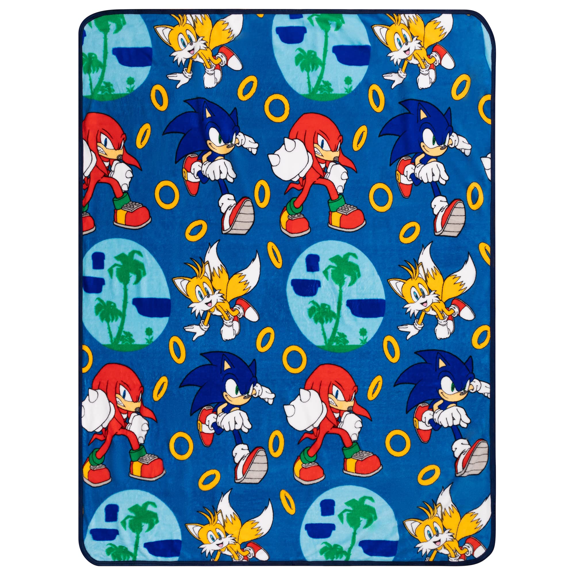 SONIC THE HEDGEHOG DESIGN: This colorful plush throw blanket features Sonic, Tails and Knuckles from the popular SEGA videogame. The lightweight and easy to carry throw blanket is the perfect cuddly companion for sleepovers, traveling, and playing.