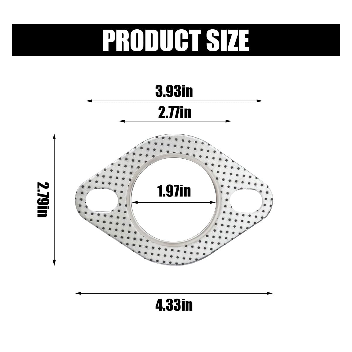 【Buyer's Guide】: The car exhaust gasket size is 4.33"L x 2.79"W x 0.08"H, 1.97" ID. The longest distance between the two holes is 3.93in, and the shortest is 2.77in. Please check carefully if our gaskets fit your car before purchasing.