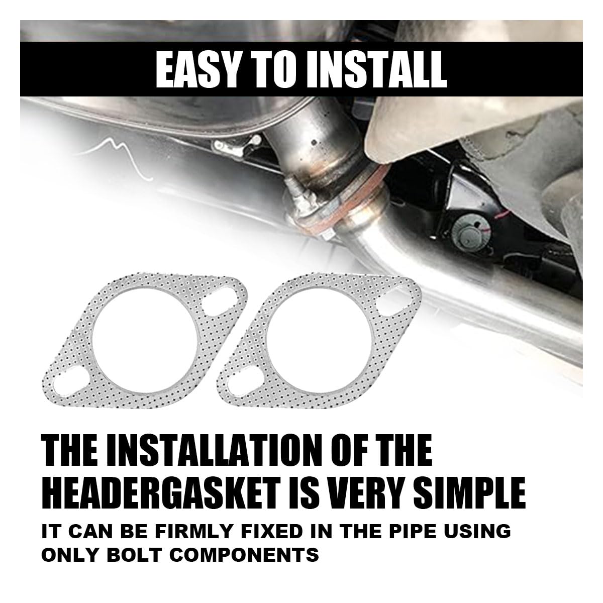 【Easy Installation】:Package includes 2x muffler gaskets, quick and easy to install; Place the muffler gasket on the connector, align the piston holes, make sure the screw holes are lined up with the exhaust pipe threaded holes, and slowly tighten the nut to ensure the gasket is secure.