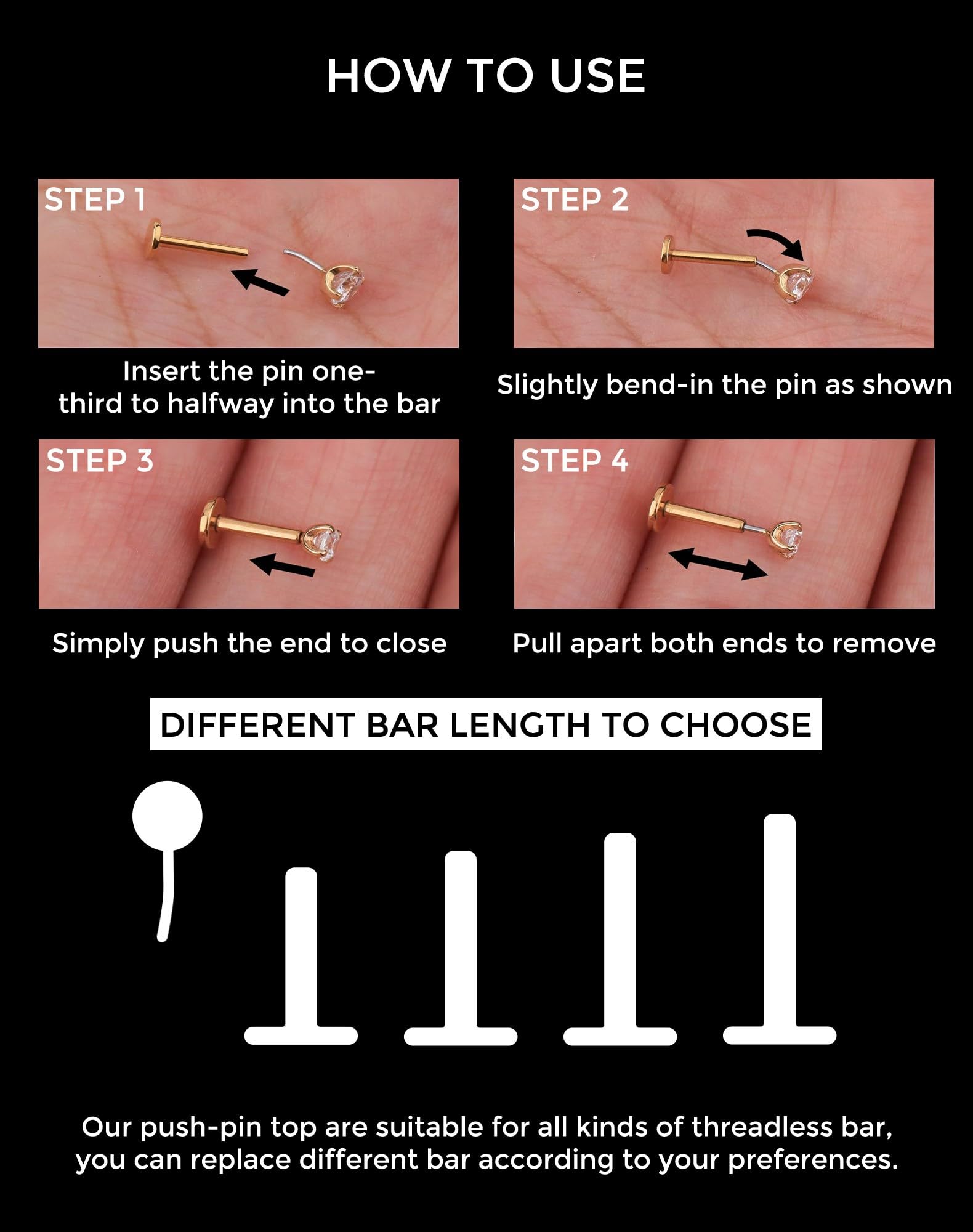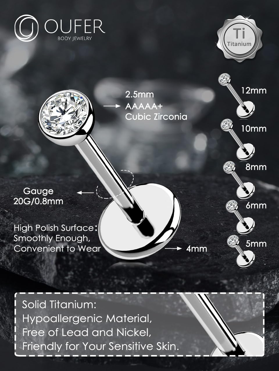 【Versatile Applications】: The flat back studs can be worn on different body piercing such as nose nostril cartilage helix tragus lobe piercing jewelry with 20G replacement bars of different lengths.