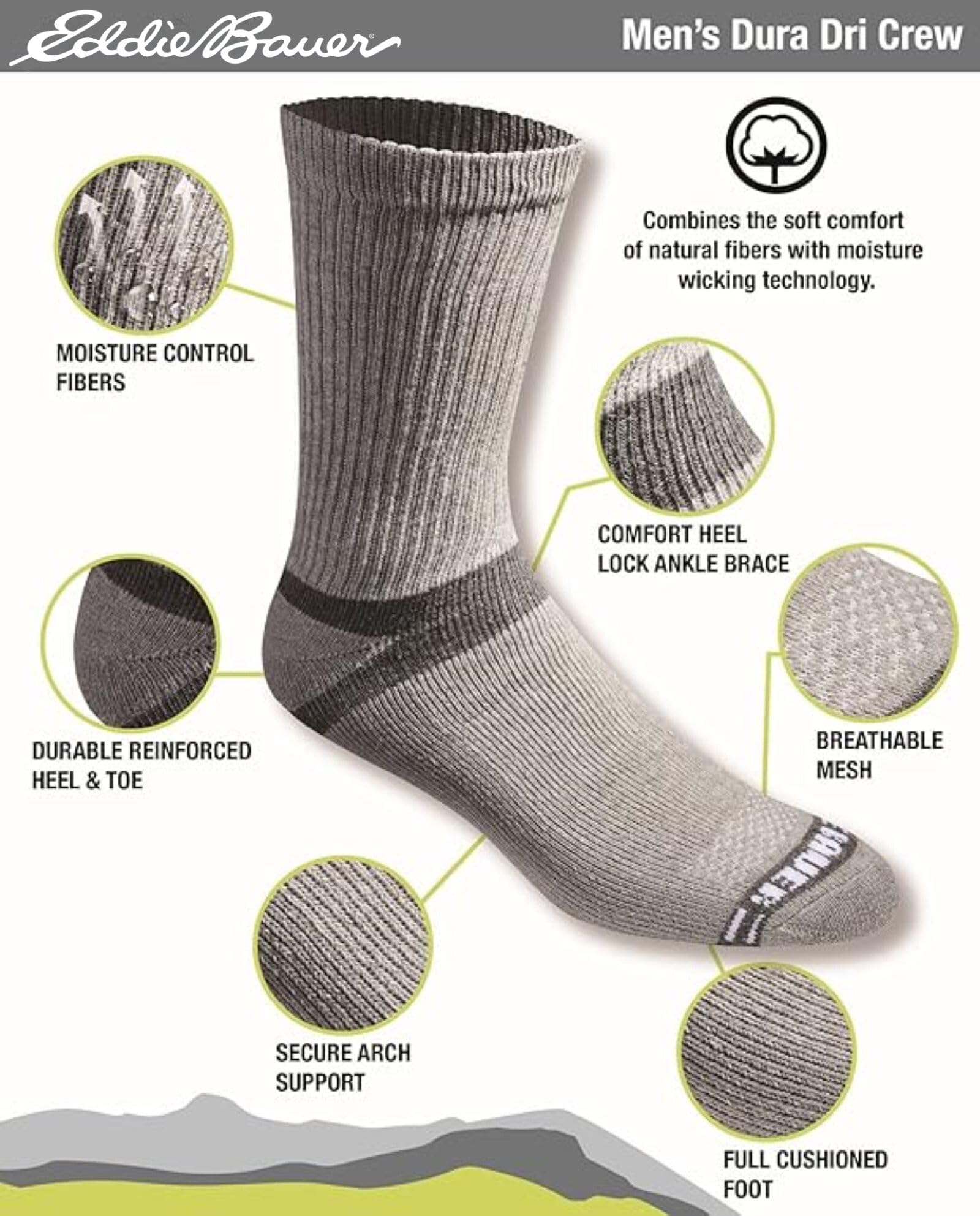 Description Our Eddie Bauer Menβs Dura Dri crew is specifically engineered to provide superior comfort, durability, and performance with advanced stability and moisture control technology.