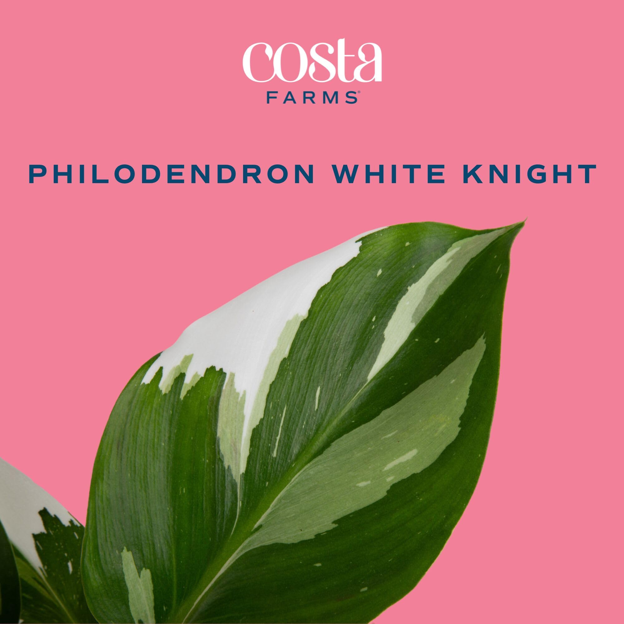 Turn your space into a showcase of modern plant style with the White Knight Philodendron, a highly sought-after variegated houseplant known for its dramatic contrast of deep green and crisp white foliage. This elegant climbing vine delivers bold visual impact with each uniquely patterned leaf—no two are alike—making it a true statement piece for any plant lover’s collection. Shipped fresh from our farm to your front door, this slow-growing but high-impact plant thrives in bright, indirect light and enjoys average household temperatures and humidity. While it tolerates medium light and occasional drying out, optimal conditions help bring out the best in its signature variegation. Provide average to above-average humidity and allow the top inch or so of soil to dry between waterings. Given the right care, the White Knight Philodendron can grow to over 6 feet tall when supported, offering vertical greenery perfect for shelves, trellises, or hanging displays. It’s a beautiful companion to other variegated favorites like the Pink Princess Philodendron, and just as easy to grow. Please note: This plant is intended for ornamental use only. It may be toxic if ingested, and its sap could cause irritation for individuals with skin sensitivities. Elevate your indoor jungle with the White Knight Philodendron—an easy-care vine with a stunning, one-of-a-kind look.