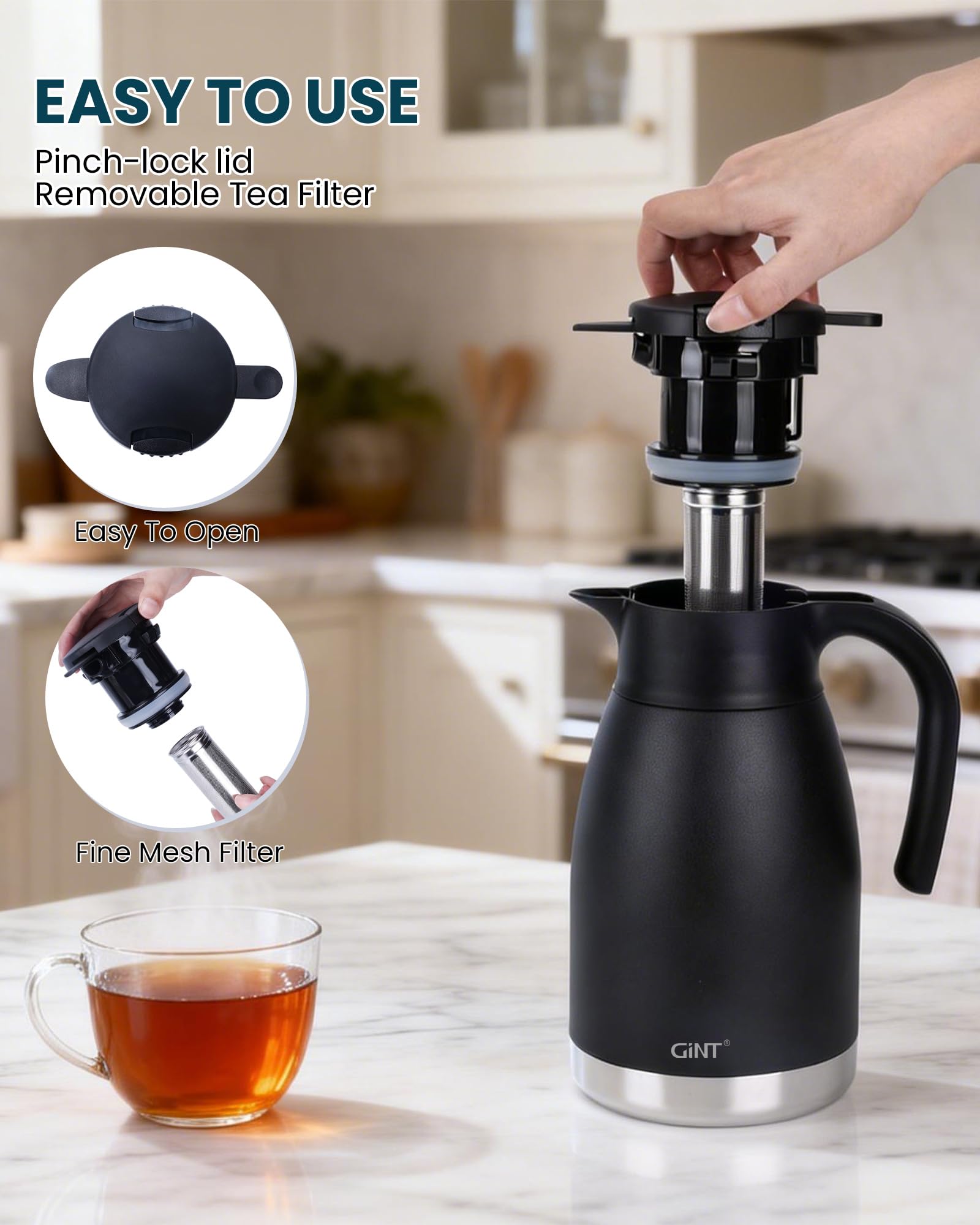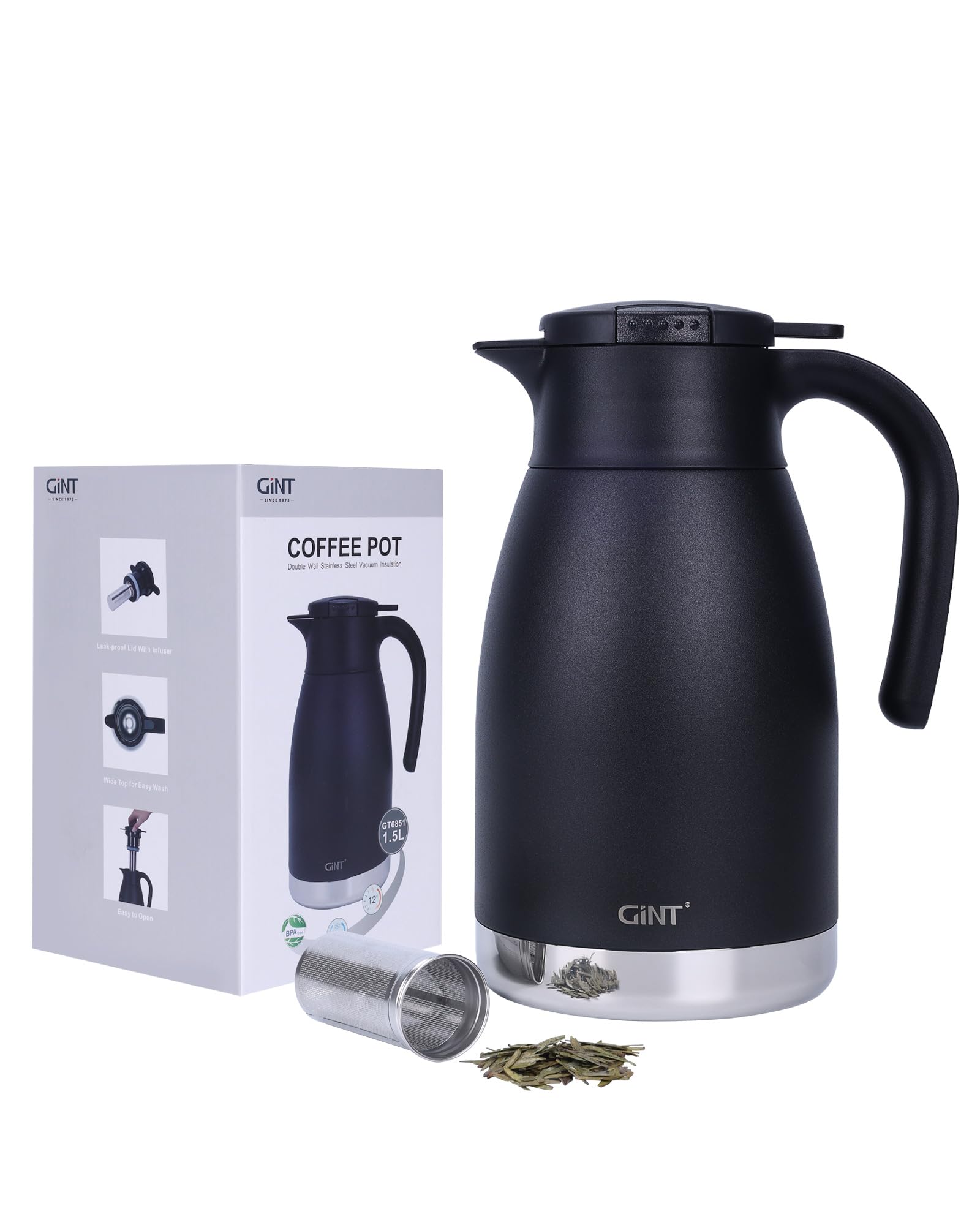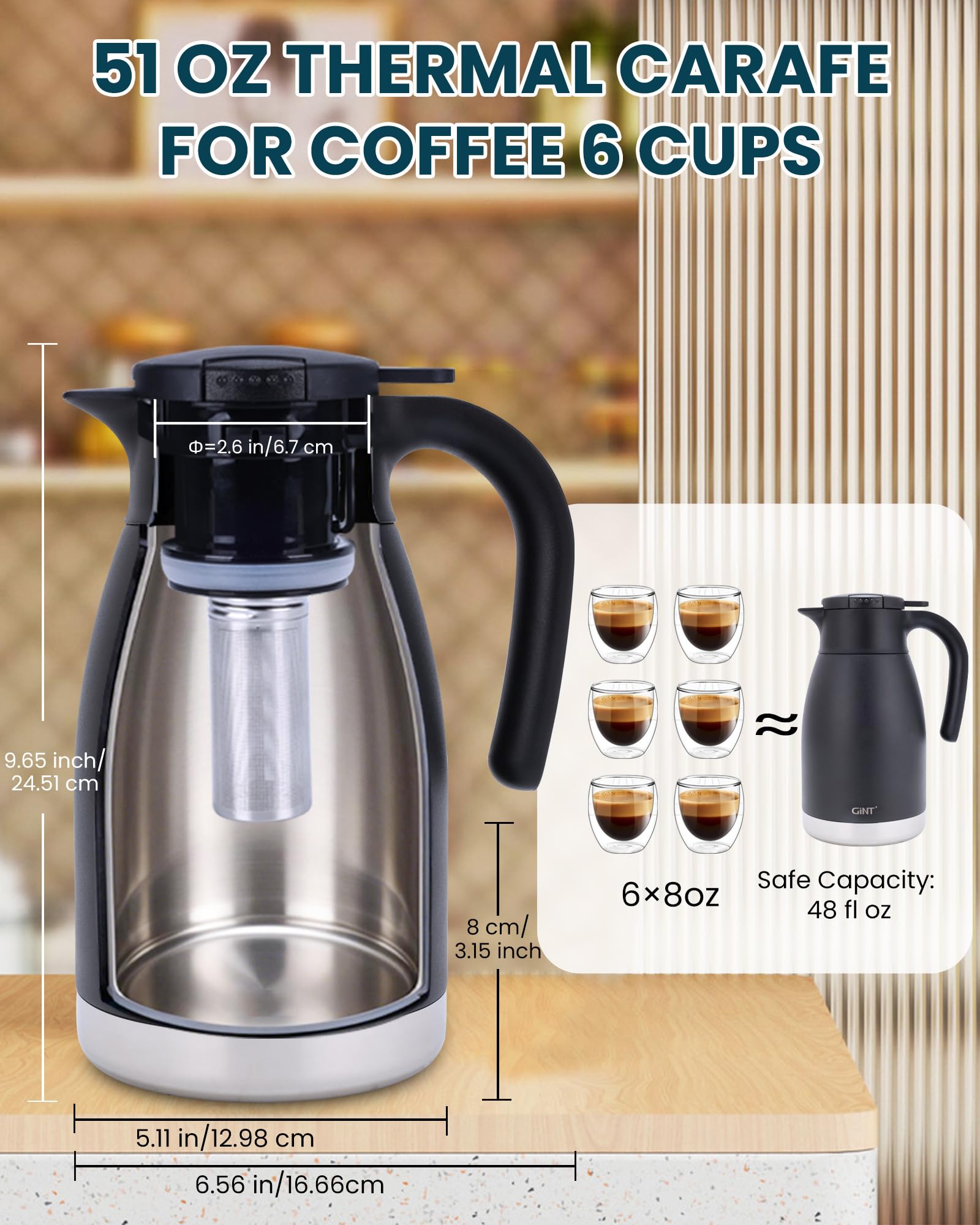 ✅ Multi-Capacity Tea Carafe with Infuser – This 51oz (1.5L) thermal coffee carafe with infuser doubles as an insulated tea carafe, holding 6–7 cups; compact 9.7"×6.5", lightweight 1.8–1.9 lbs, ideal for small households, home offices, or personal tea brewing. GiNT ensures a perfect fit for those who value both portability and function.