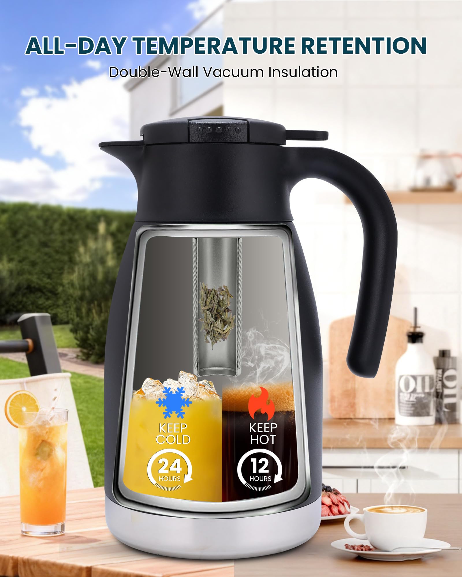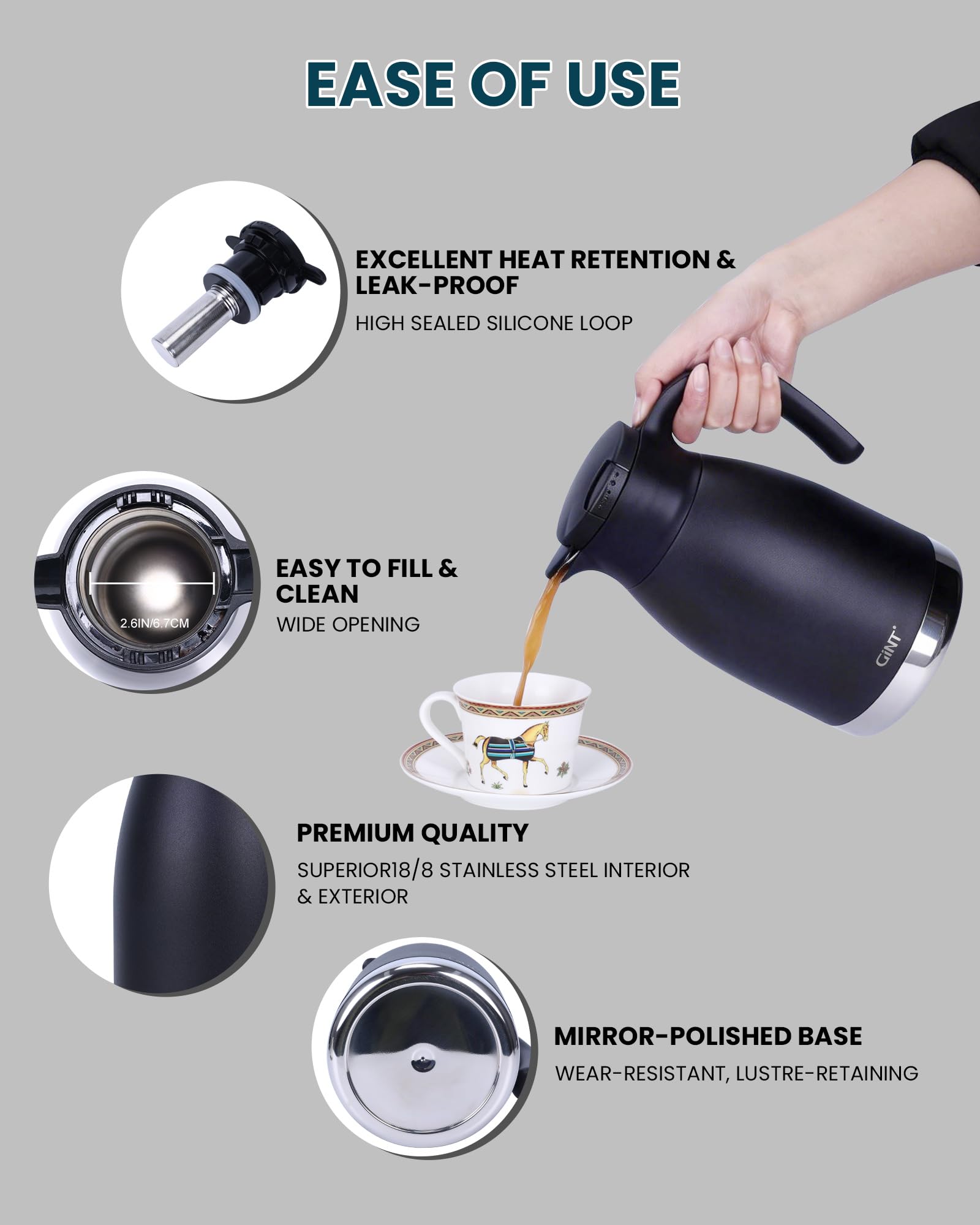 ☕ All-in-One Beverage Server for Daily Moments – Compatible with coffee, tea, hot water, juice, and hot/cold drinks. Works as a thermal pitcher, tea flask for hot beverages, and hot drink dispenser for everyday and casual gatherings. GiNT brings style and utility together in one carafe.