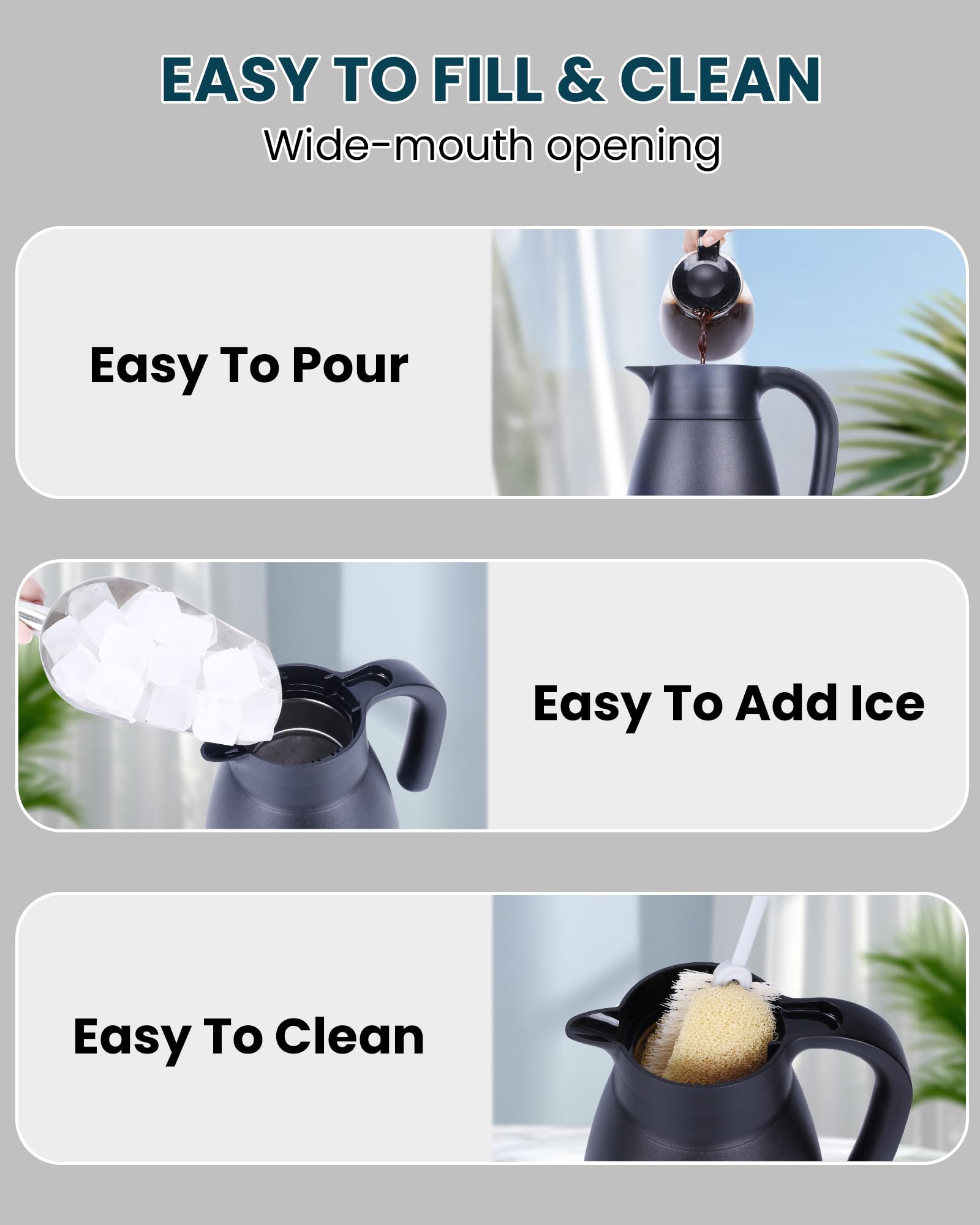 🧼 Wide Mouth & BPA-Free for Easy Care – Wide mouth opening simplifies cleaning and adding ice; BPA-free certified for safe tea steeping or warming beverages. Parts are dishwasher-safe for added convenience. Functions as an insulated creamer or milk carafe with versatile use.