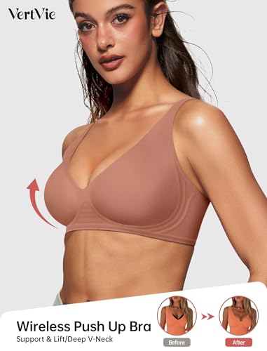 【Sexy Deep V Neck Bras】Discover the allure of our stylish plunge bra! Designed to enhance your natural shape, this full coverage bralette features a plunging neckline that offers a sexy, elegant look and enhances your natural cleavage. Its design makes it perfect for pairing with low-cut tops and dresses, adding a touch of sophistication to your outfit. The VertVie wireless comfort bra will be your new favorite style with its smooth, invisible look.
