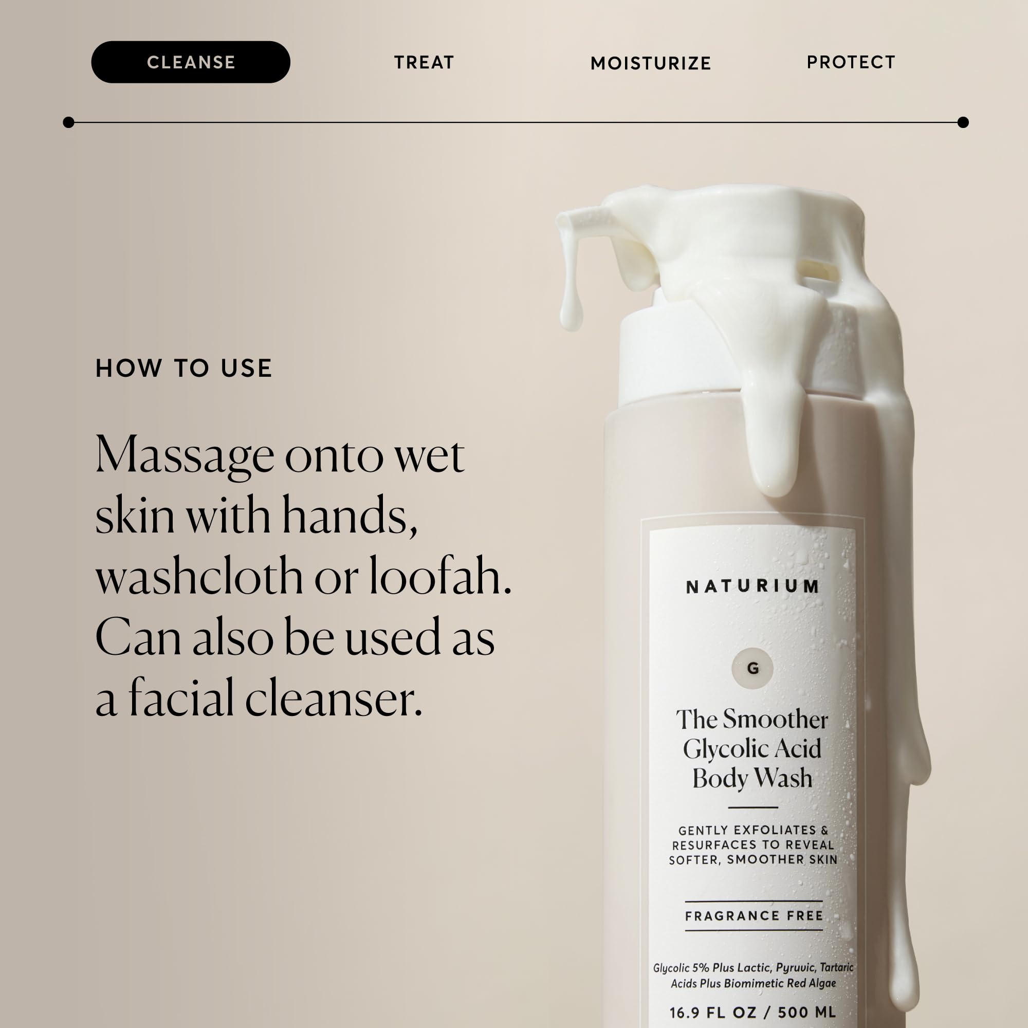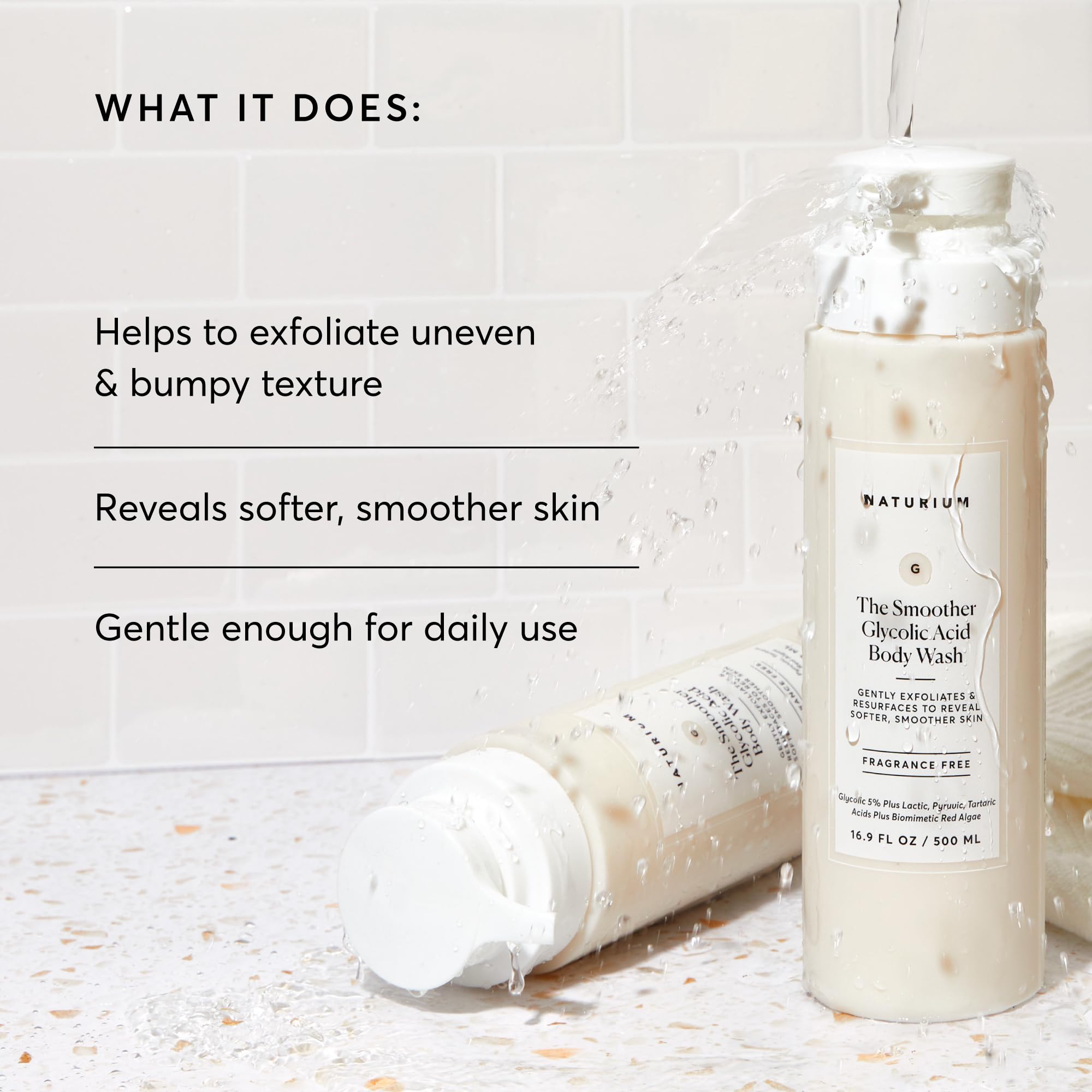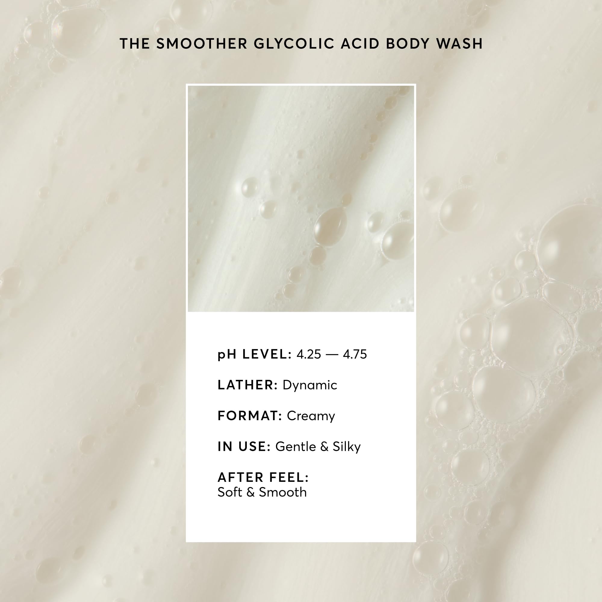 SMOOTHING CLEANSE: Our glycolic acid body wash exfoliates and resurfaces rough and bumpy texture to reveal softer, smoother skin