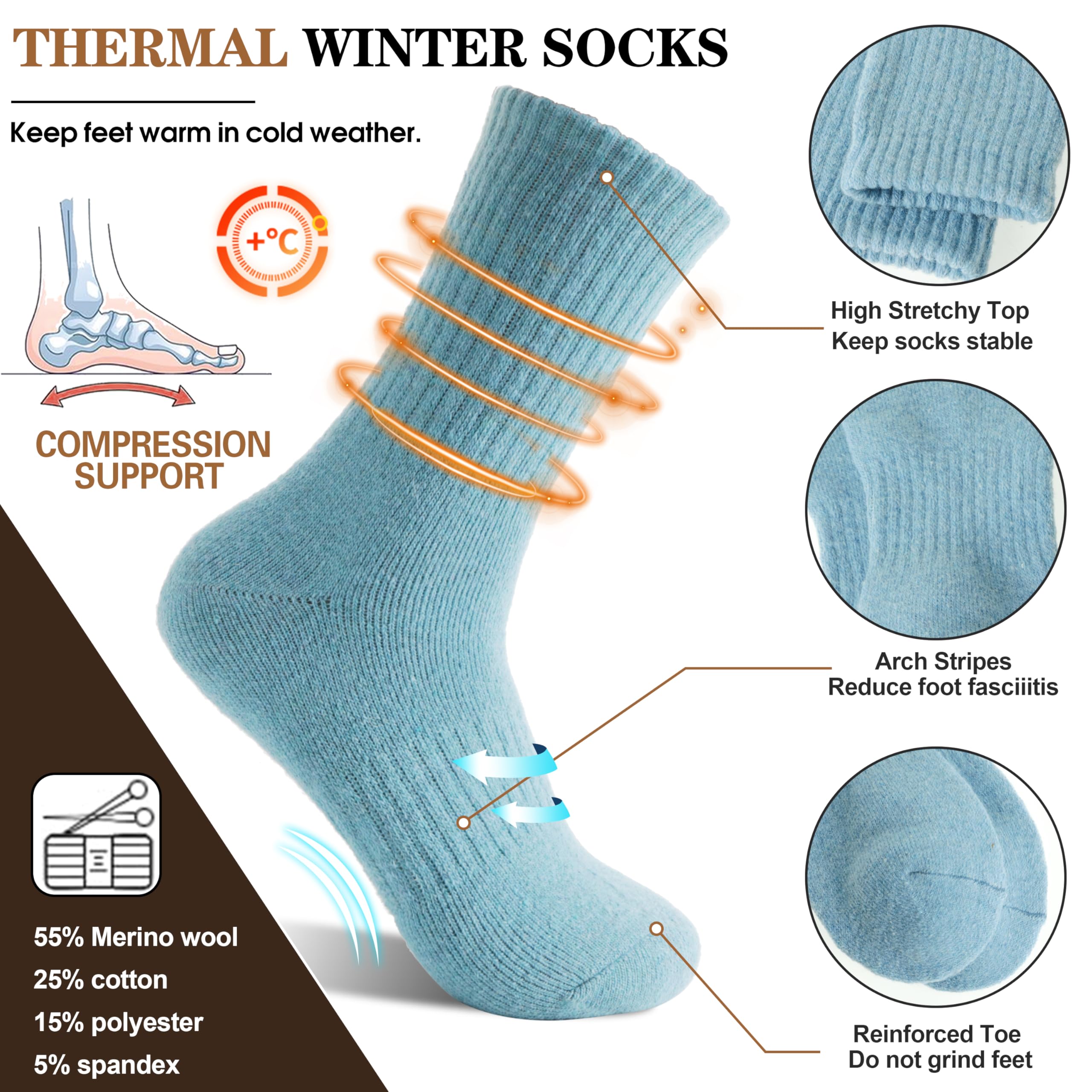 FIT MANY OCCASIONS : These high-quality womens warm wool socks are suitable for different situation, you can wear them as heavy socks, hiking socks,thermal socks, thick socks, warm socks, heavy duty socks, boot socks, soft socks, outdoor socks, sport socks, cabin socks, crew socks, office socks, school socks, indoor socks, home socks, work socks, knit socks,novelty socks, comfy socks, cold weather socks or Christmas socks.