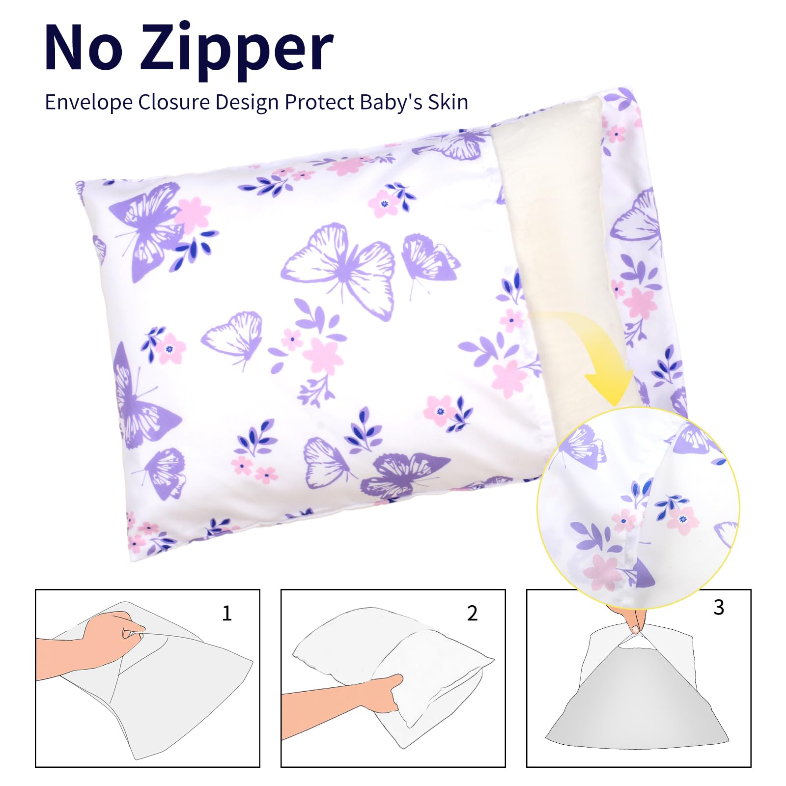 【ENVELOPE CLOSURE DESIGN】The back of the pillowcase adopts an envelope design without a zipper.That means your child won't be hurt.And the pillow won't fall out anyway and easily to put in or take out pillow.