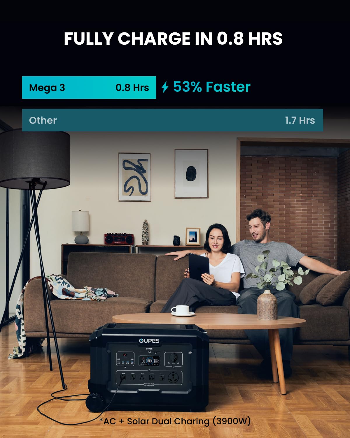 【0.8H Fast Charging】Fully recharge the Mega 3 in 1.8 hrs with 1800W wall outlets, or 2100W solar charged in 2.5 hrs, thanks to the industry-leading solar conversion efficiency of up to 23%. Ideal for juicing up the battery between short outages.