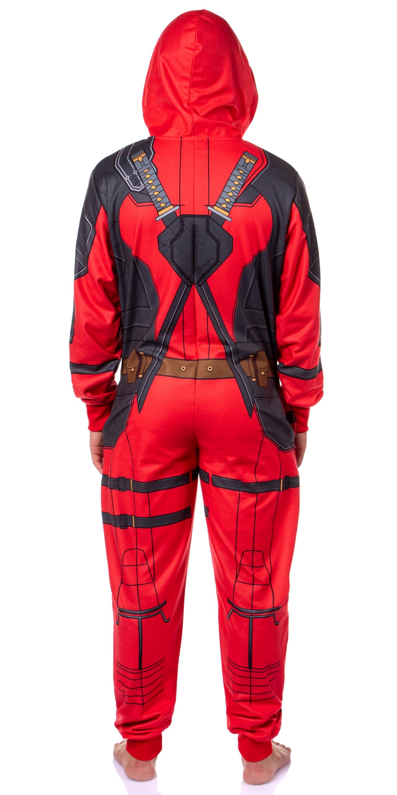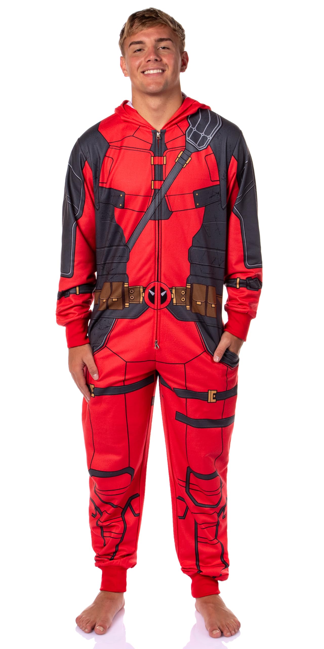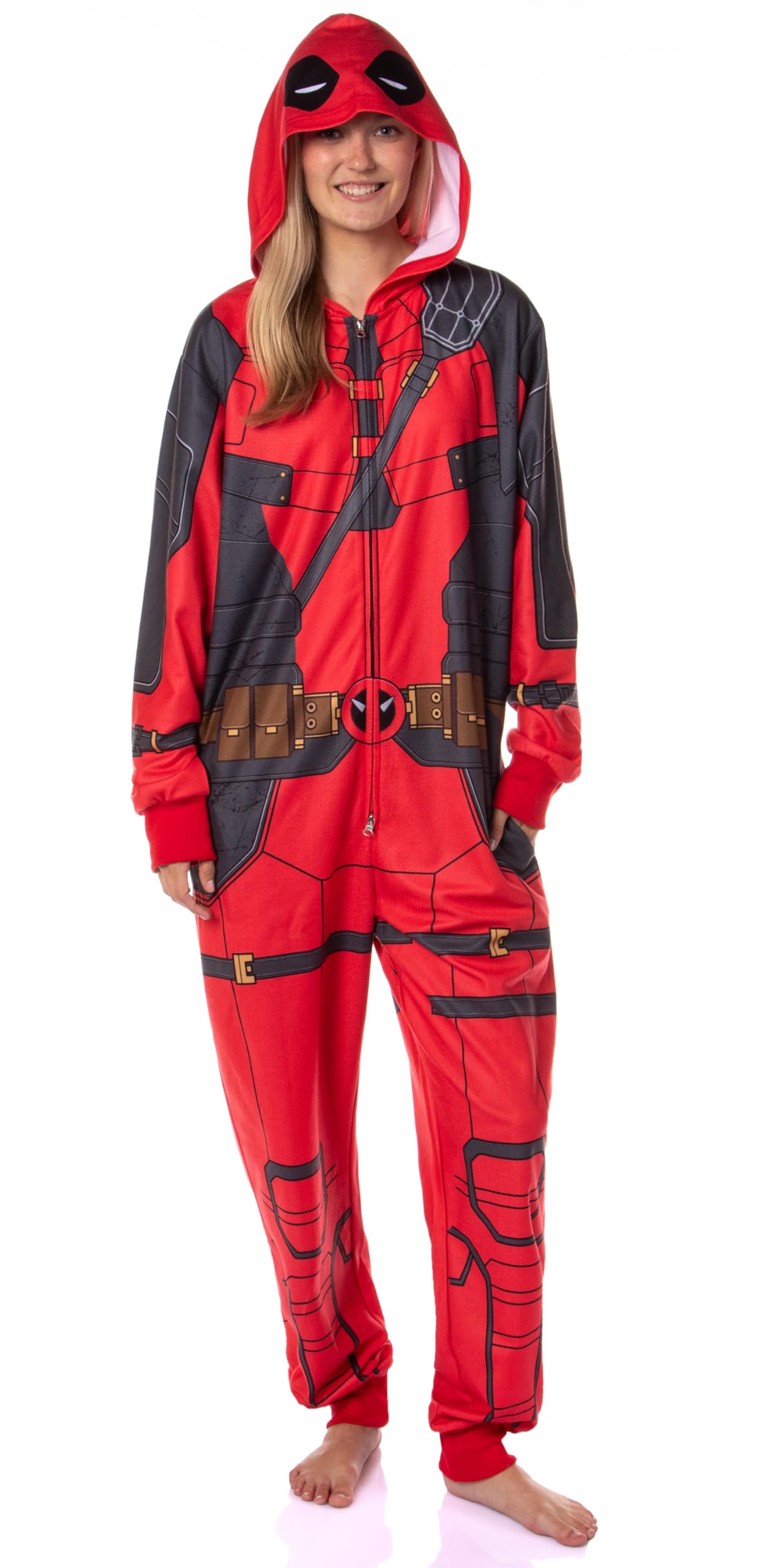 Description Transform your loungewear into a heroic adventure with the Marvel Superhero Adult Hooded Union Suit Costume Pajama! Whether you're saving the world from the comfort of your couch or gearing up for a fun costume party, this union suit has got you covered. Made from 100% polyester, it features ribbed arms and legs for a snug fit and an all-over superhero suit design that extends up to the hood. The double slider zipper closure runs from the neck down to the crotch, making it easy to slip into your superhero persona. This versatile union suit is ideal for couples or family matching pajamas, bringing a touch of superhero fun to your everyday life.