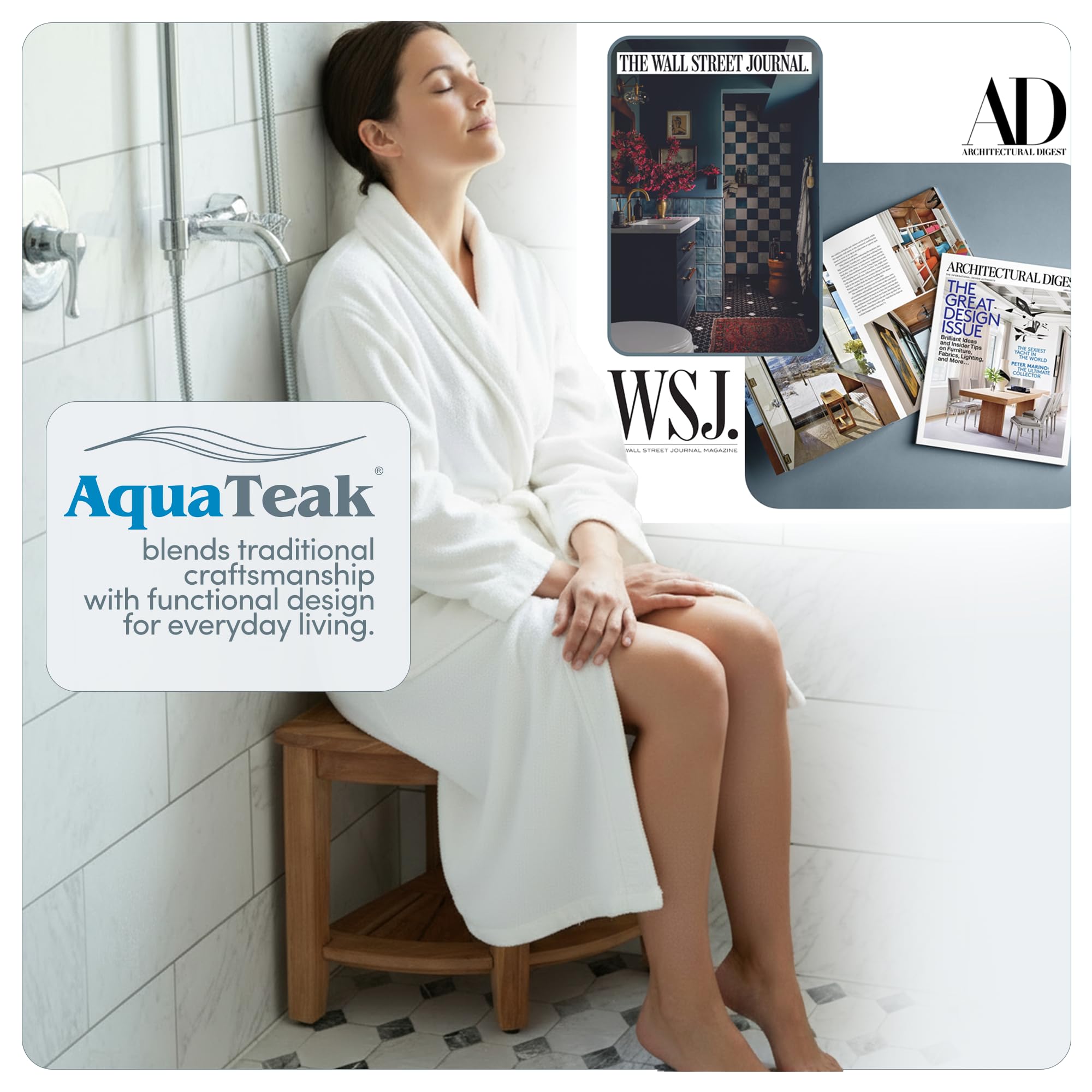 AquaTeak - Pioneers of Teak Innovation: For over 20 years, AquaTeak has been passionately creating durable, stylish, and top-quality Teak furniture. As the first to design teak wood shower bench, bathroom organizers and storage systems, we continue to lead with luxury products crafted from responsibly harvested Indonesian teak. We stand behind the quality of our products with a 30 Day Satisfaction Guarantee and a 5-Year Warranty.