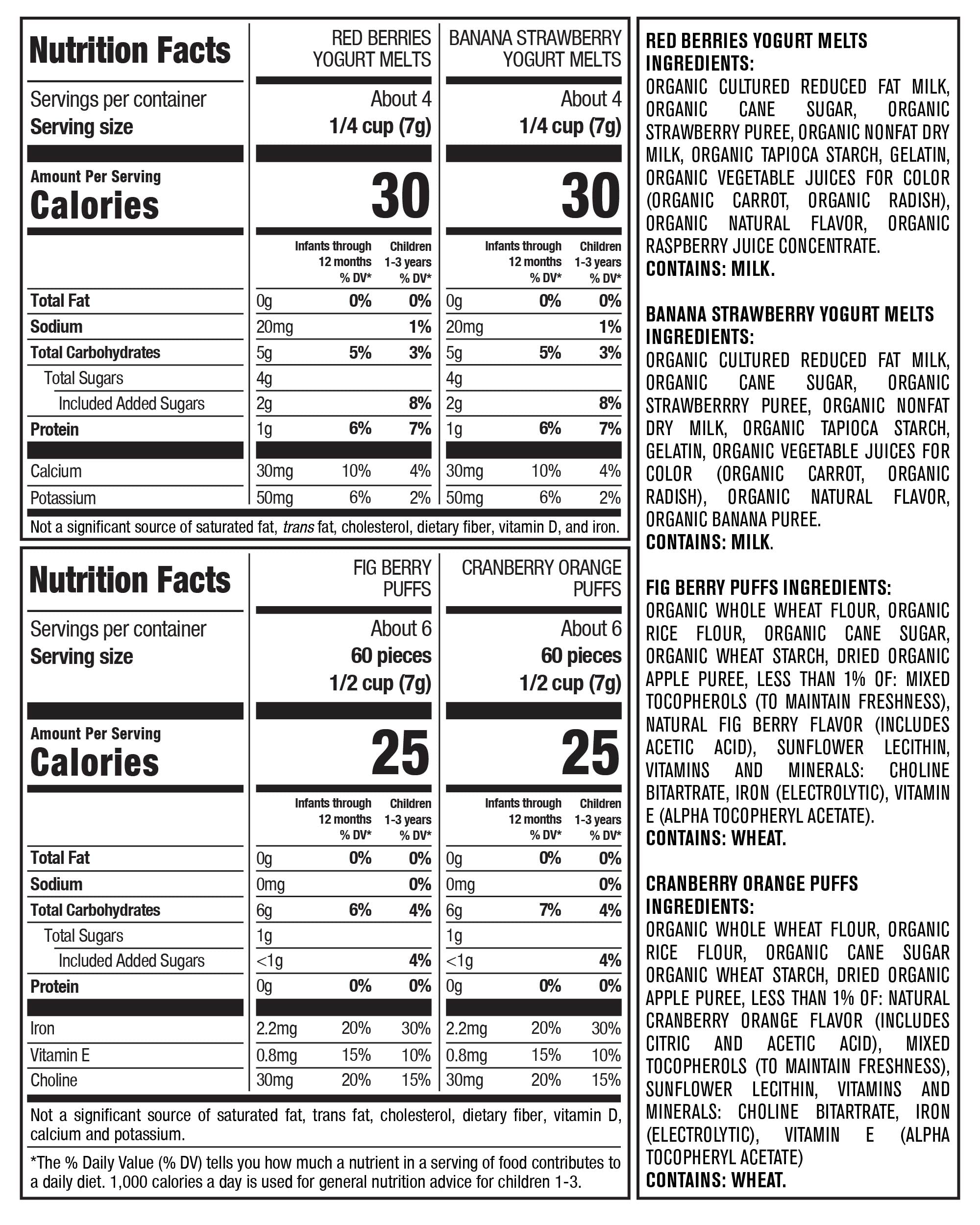 Packed with goodness: with delicious yogurt & Real fruit, your child will love these snacks. Contains no artificial flavors, sweeteners or preservatives